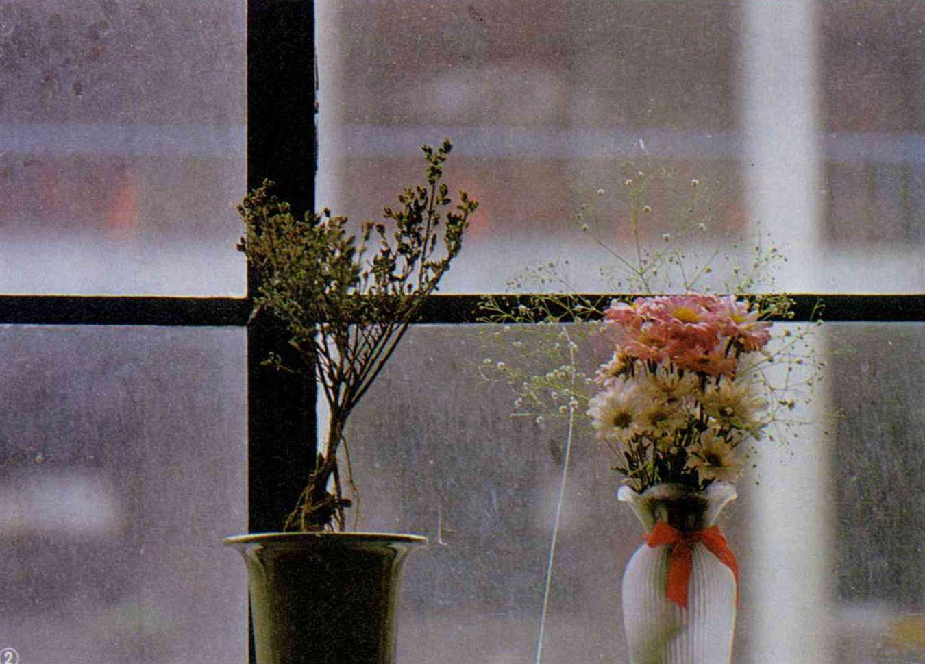 圖2.:幾束鮮花映著窗外濛濛煙雨,將室內烘托得雅緻、溫馨。靜宜處處可見這種女孩兒家心思巧細的佈置。(鐘永和)