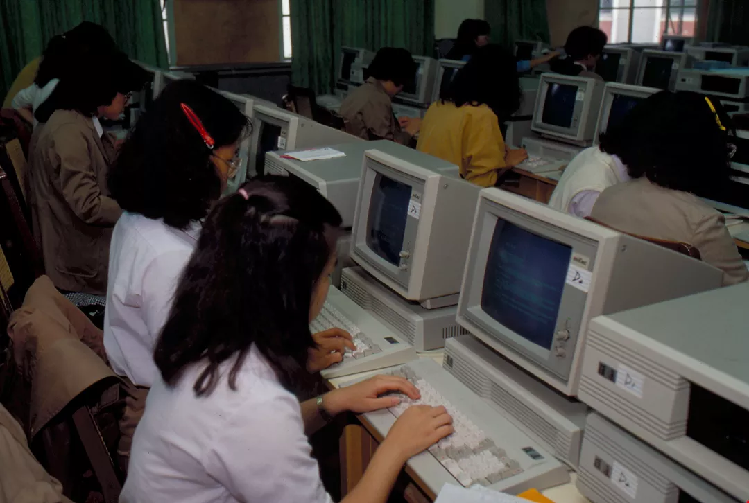 圖2.:靜宜規定全校同學都必須修電算機概論課程,圖為上課的情形。(鐘永和)