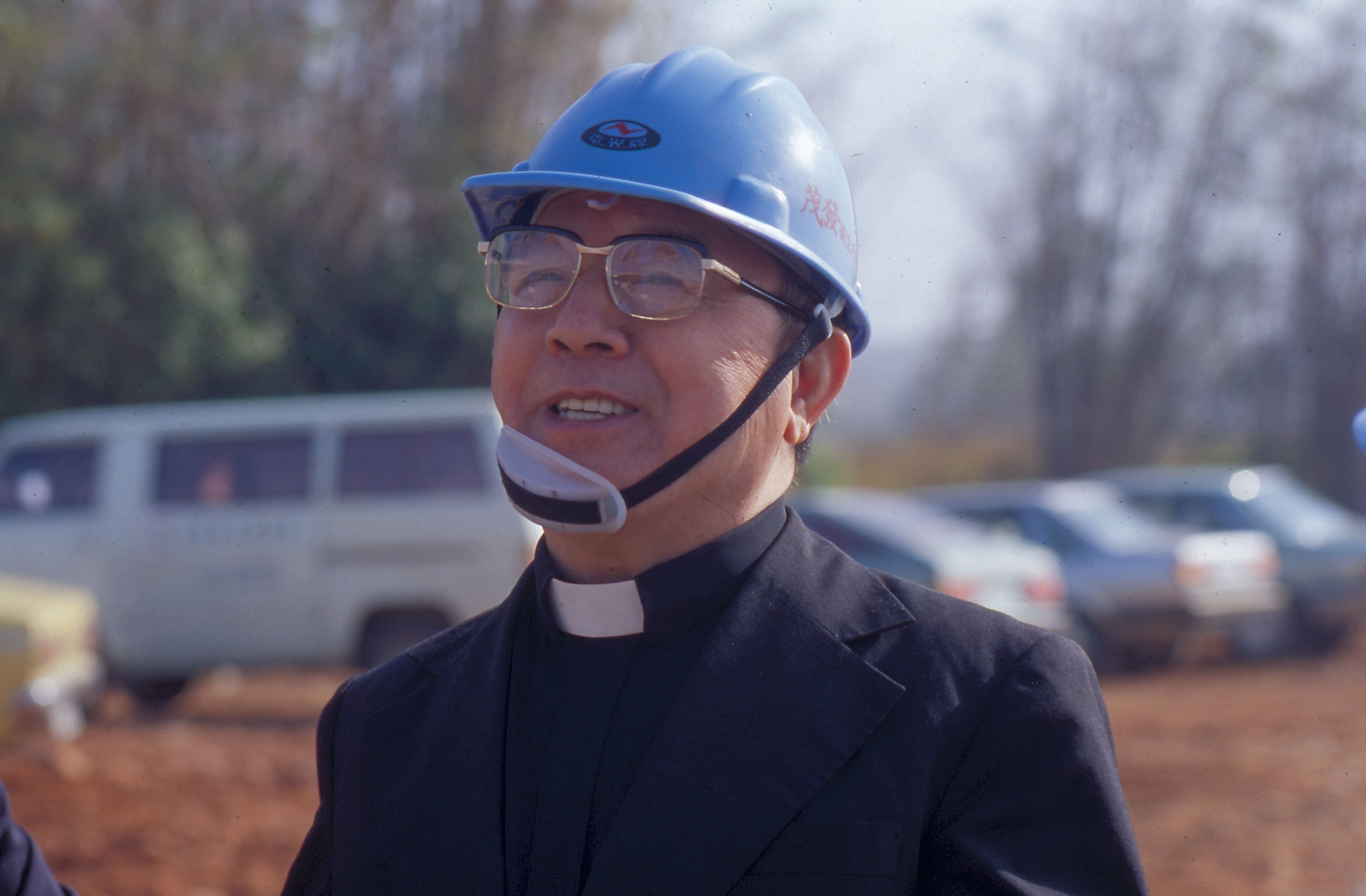 圖3.:郭藩院長巡視新校區工地時,想見未來,開心地笑了。(鐘永和)