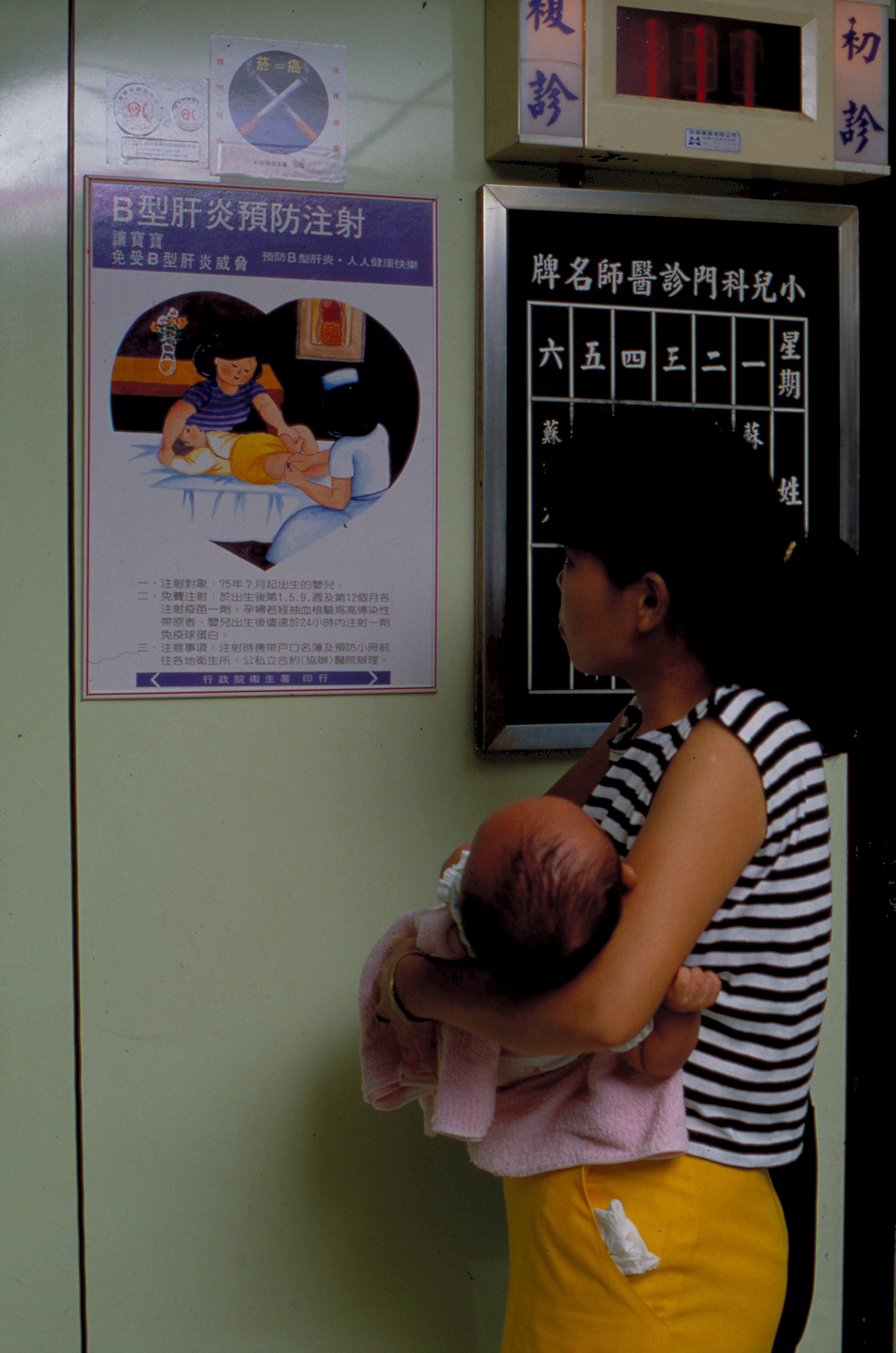 有鑑於此,行政院衛生署於民國七十三年七月起,對母體表面抗原(HBsAg)及e抗原呈陽性的高危險群新生兒展開免費預防接種,在出生廿四小時之內即注射一劑由已帶抗體的血液中提煉出來的「B型肝炎免疫球蛋白」,直接注入抗體以對抗病毒。陳定信所長形容這種免疫法是「病毒與抗體賽跑——誰跑得快誰就控制新生兒」!