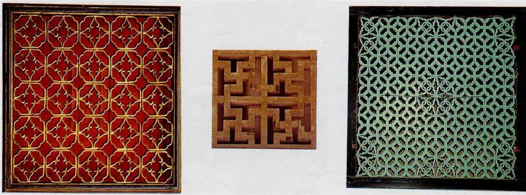 傳統建築窗櫺上的富貴吉祥圖案:柿蒂紋、卍字紋、金錢葫蘆紋。(陳益宗攝)