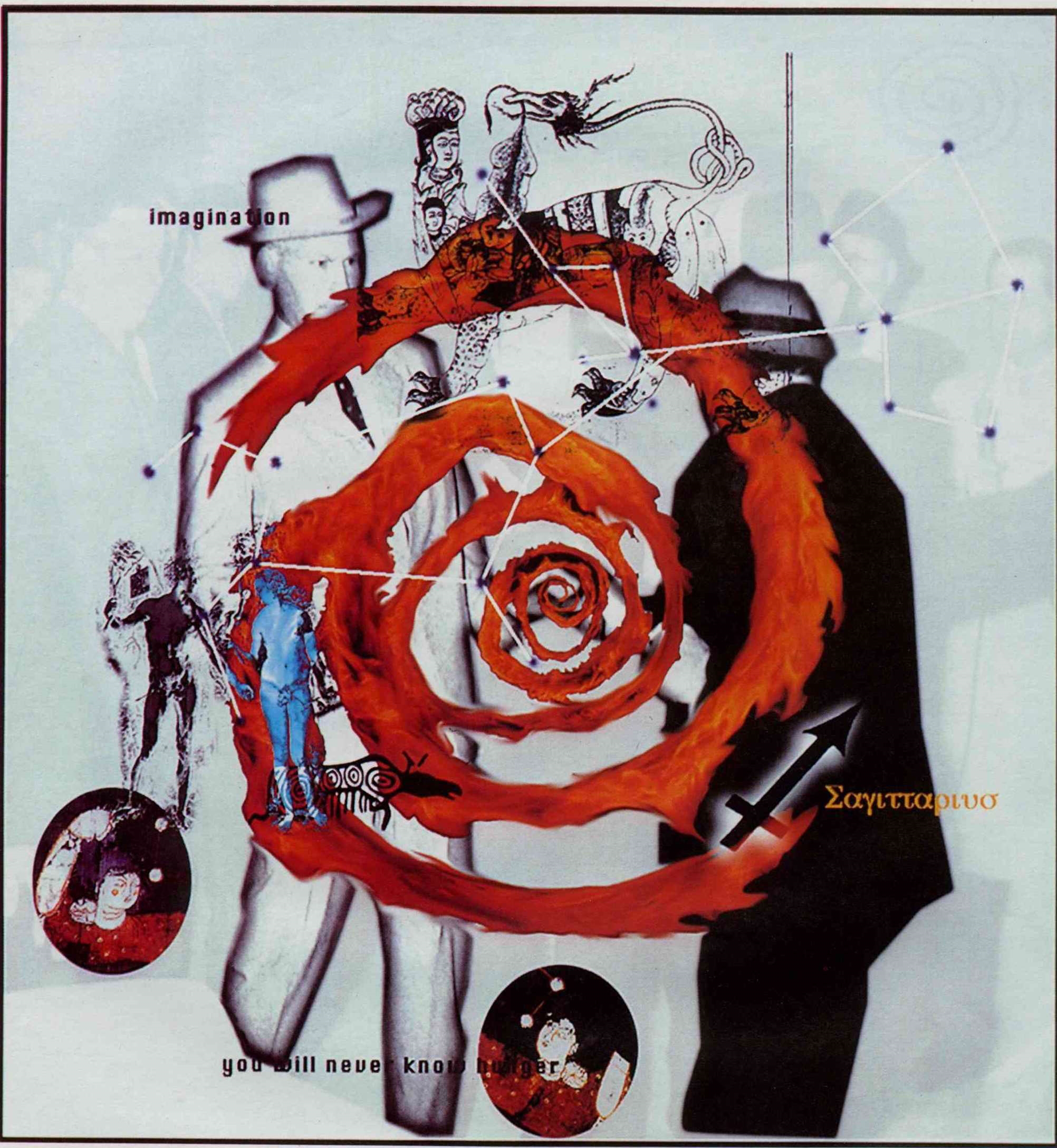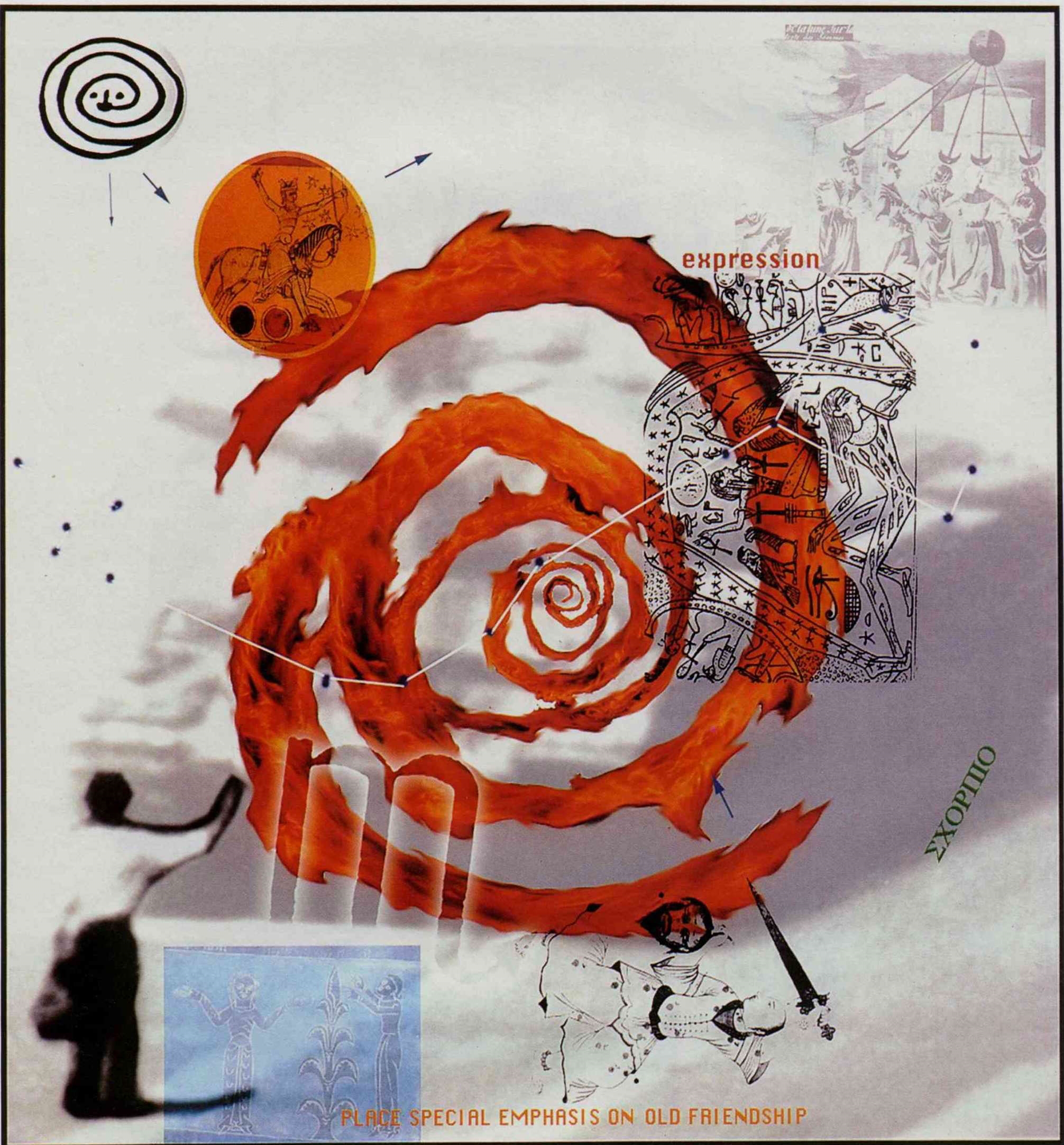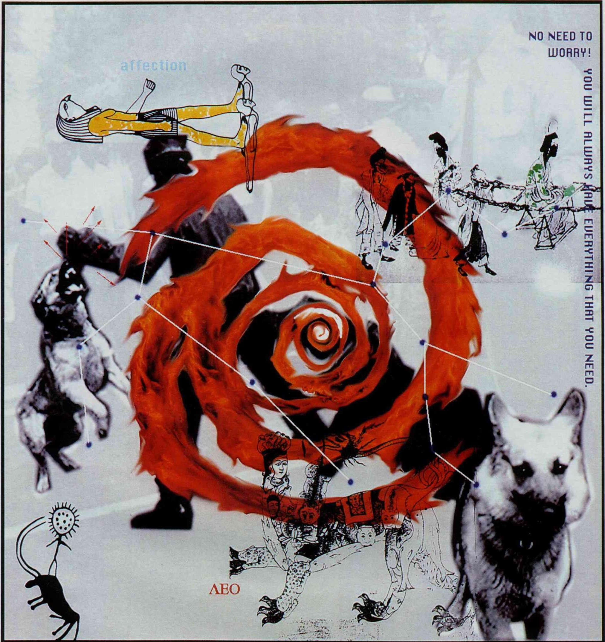 東西神話鮮活的影像,所渴望傳達出的,是一種突破時空的地域疆界文化。螺旋展現的動態火花,則是想釋放出結合這些圖像因素的思維活力,並傳達心靈活動與文明演化間的共鳴。