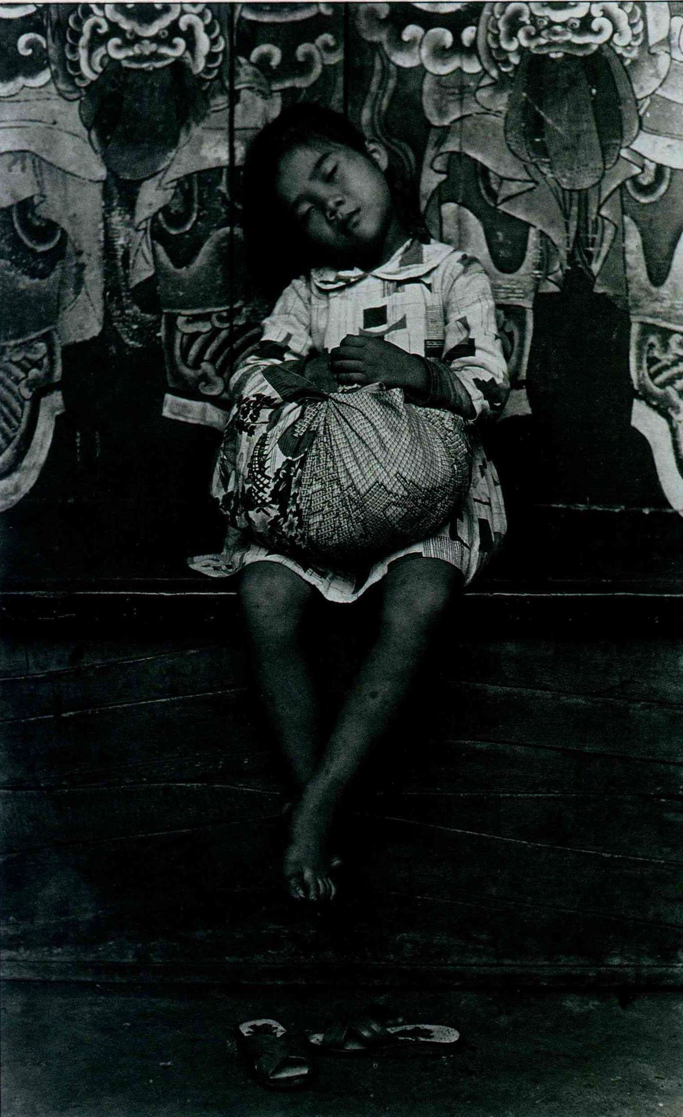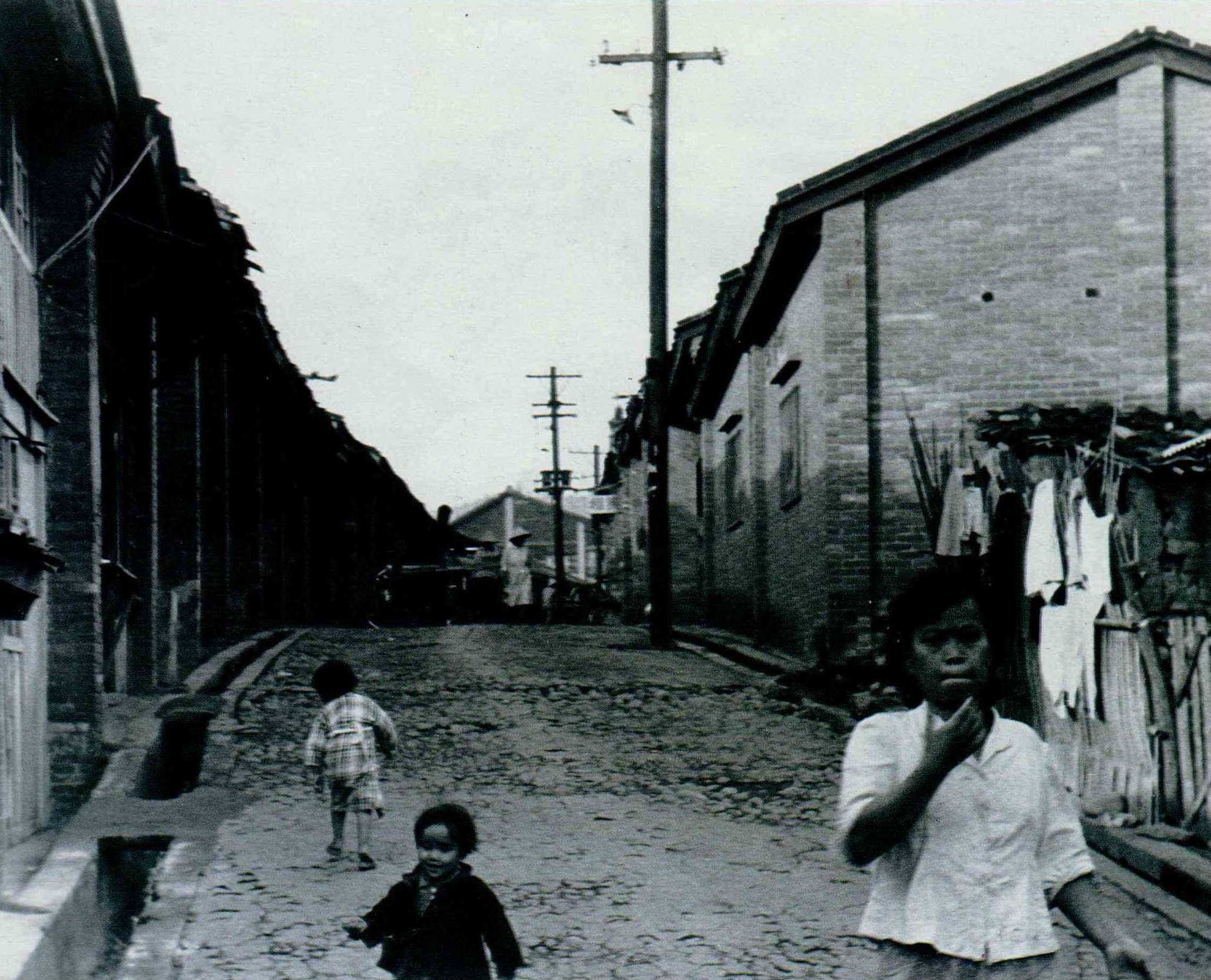 「後街」(一九五七年)塈e現著卅年前關西的民宅老街景觀,以今天的變容來看,這些磚房的樣式、起伏的路面與來往行走的婦孺樣貌,的確令人遙想與思懷。施安全的視角極為平實,好像這只不過是一個過路人的眼神,沒有攝影家刻意的「意識」,只是臨場一瞥罷了。