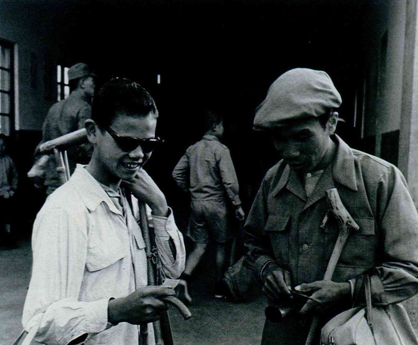 在「同伴」(一九五七年)中出現的盲者伙伴、「合奏」(一九五九年)裡的年輕樂手、「叫賣」(一九五七年)中的布偶小販等人物中,讓我們見到了真確而動人的生活速寫。施安全對渺小人物的同情與感知,以及「庶民化」的視角,使得我們在照片裡領會到卑微人性中的堅毅與自若。戴著墨鏡持柺杖的年輕盲者的笑容、布偶小販的吆喝眼神、以及廟會裡年輕樂師若有所思的面容,表達了五○年代的人物個性與質素,一種質樸有力的民間精神,這些才是影像令人感動的地方。