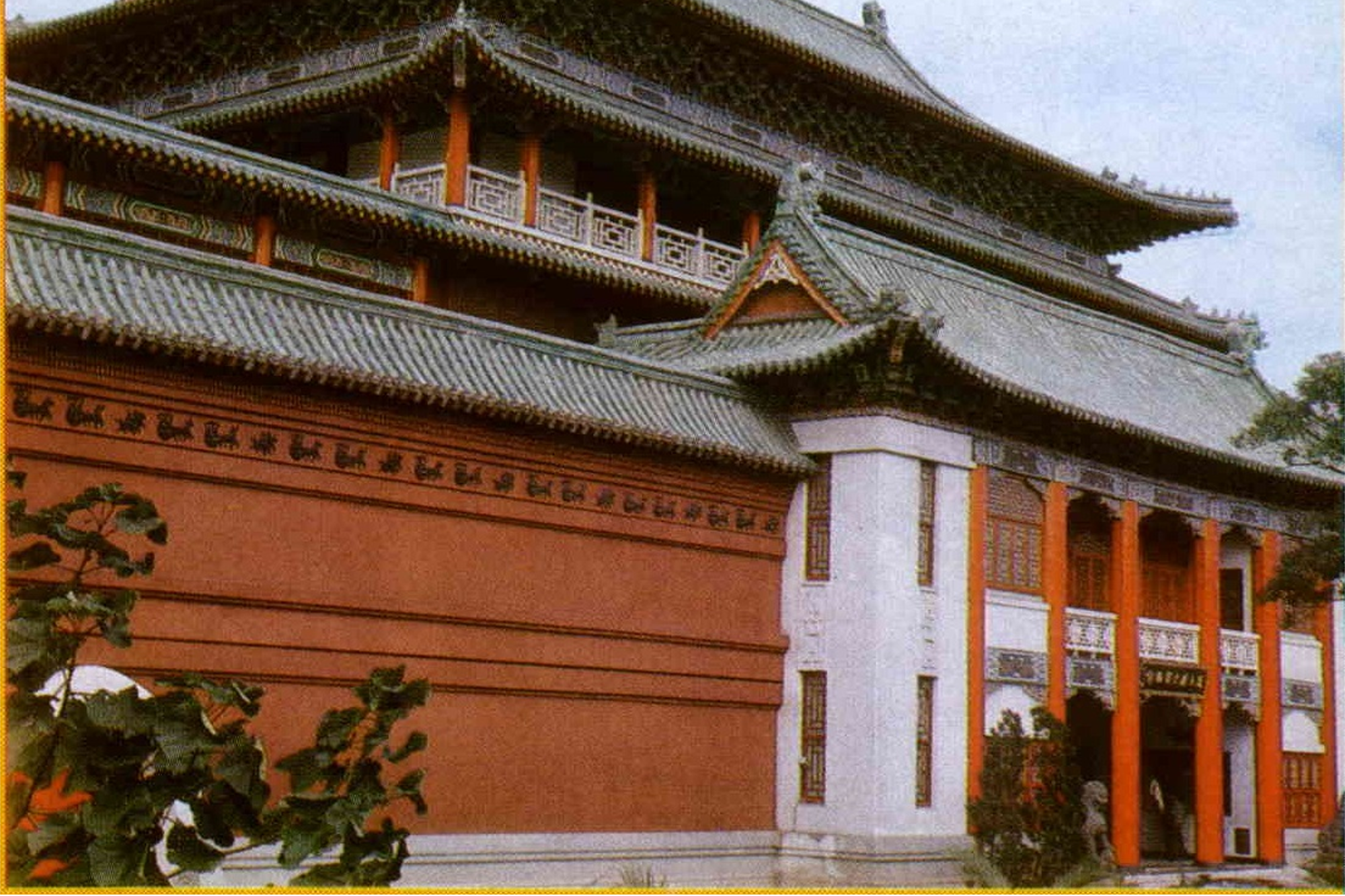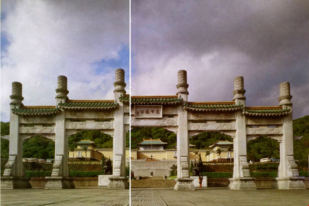 國立故宮博物院的中國傳統式前門,塑構堂皇,彩色優美。