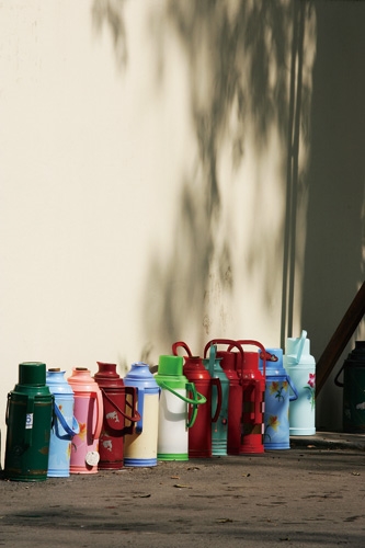 求知若「渴」 文‧林格立 圖‧林格立 2008 12月 EN 分享: 五顏六色的熱水瓶在地上排排站,這是南京大學的校園一景。 住在宿舍的同學,早上離開寢室上課前, 都會順手把熱水瓶帶上,放在取水房外頭。 等中午下課,校工已把水裝好了, 同學們又一手書本,一手熱水瓶,回房吃飯唸書去嘍。 分享: