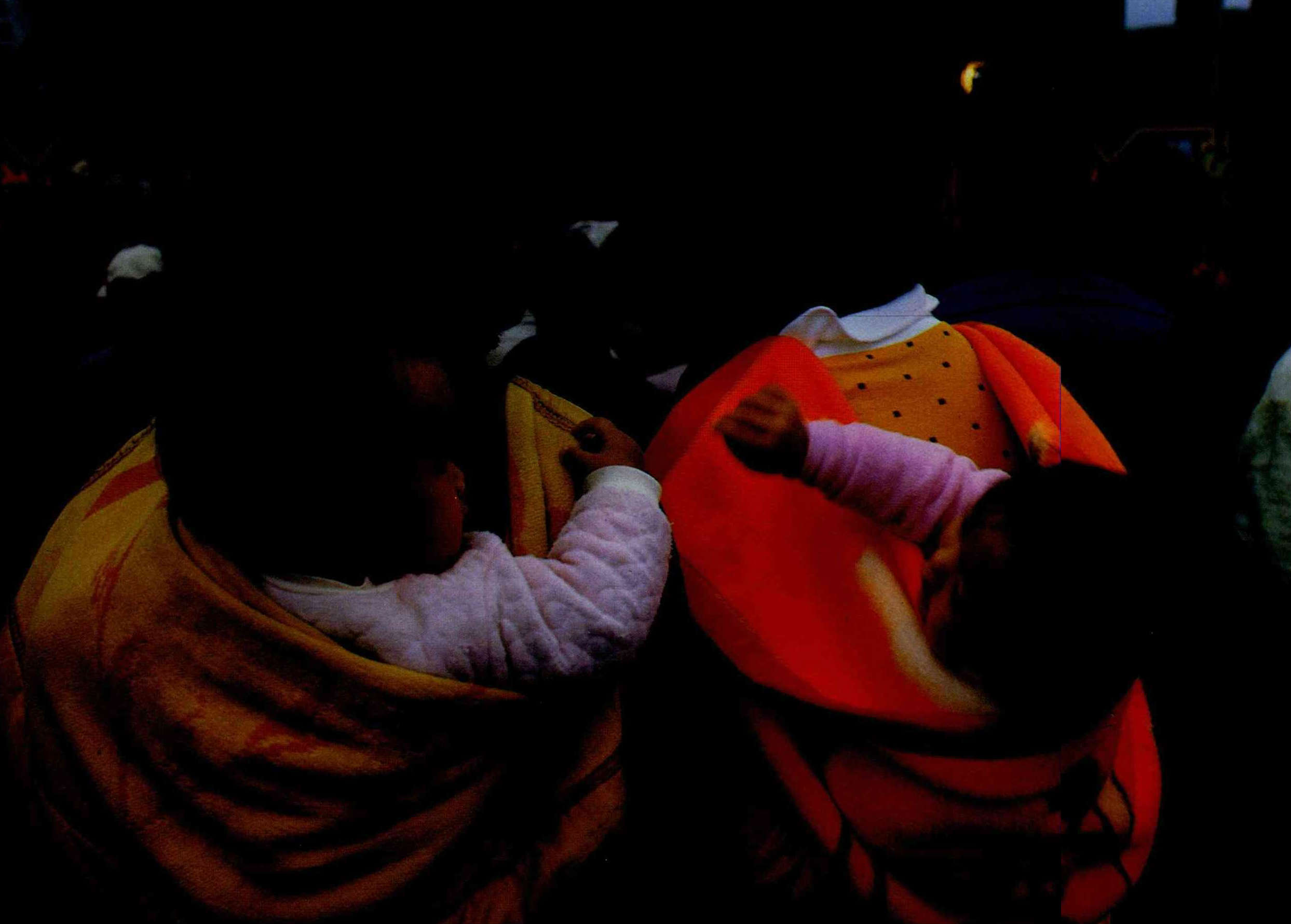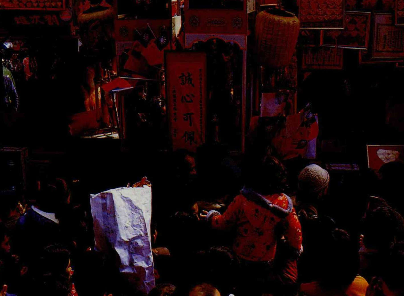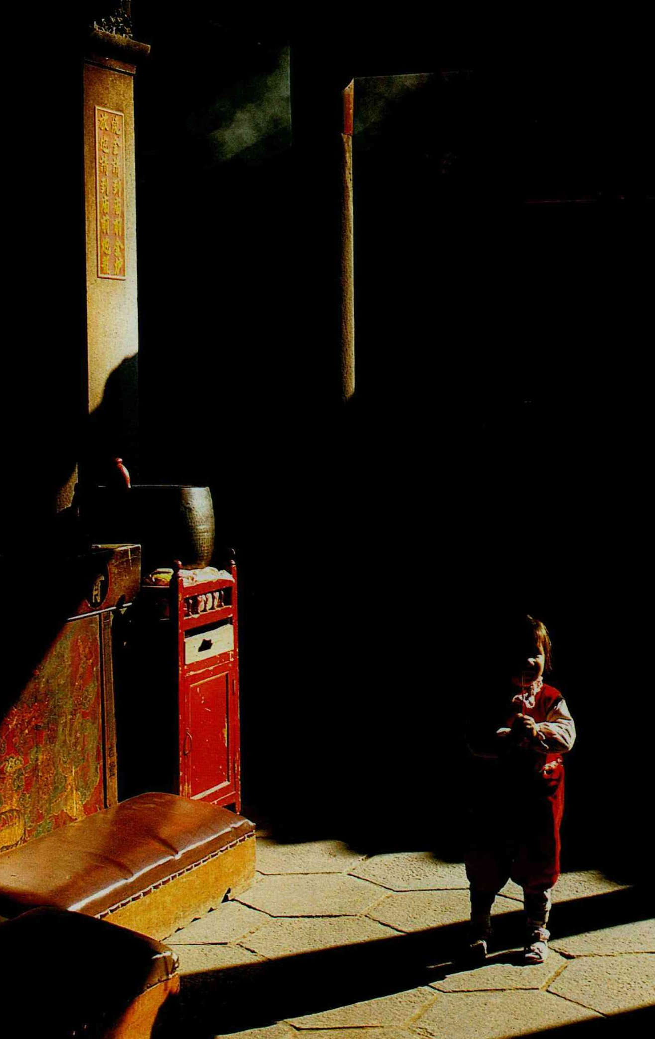 希望的故事 文‧王葭 圖‧鐘永和 1987 2月 EN 分享: 希望,是阿嬤手中的香煙嬝嬝,是古廟裡穿樑而來的陽光,是陽光下持香佇立的我。(鐘永和) .「司令」執意衝鋒,而「軍長」已經成仁,「地雷」在四面翻滾;謝謝老天,我的征衣早已封存。說好總要重逢,無論劫後成灰,而重逢竟在今朝,鑼鼓聲裡,伸手向你,親縫征衣的纖手,是否熟悉?(鐘永和)誠心可佩,豬公可殺;這樣的熱鬧可好,還有阿爸的肩頭可坐。(鐘永和)大樹的枝椏伸往天空,阿公的雙手舉向枝頭;樹下有盤固的深根,枝上有傳家的命根。(鐘永和)所有的故事,都有個相同的開始——從此,他們過著幸福的日子……。(鐘永和) 分享: