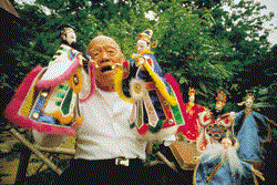 每一次演出前,海岱伯總是親自檢視每一尊即將上場的戲偶,宛如慈父細心呵護孩子。