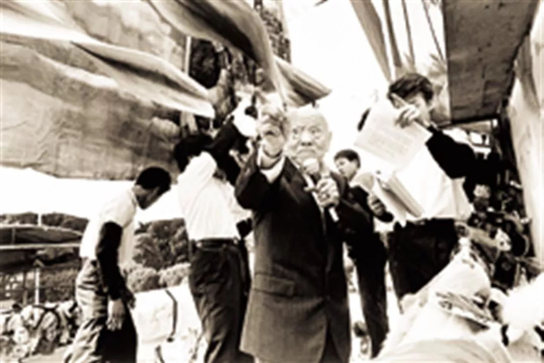 一九九六年元旦,海岱伯在國父紀念館廣場演出賀歲戲碼,老人家認真賣力的神態,令人嘆服。