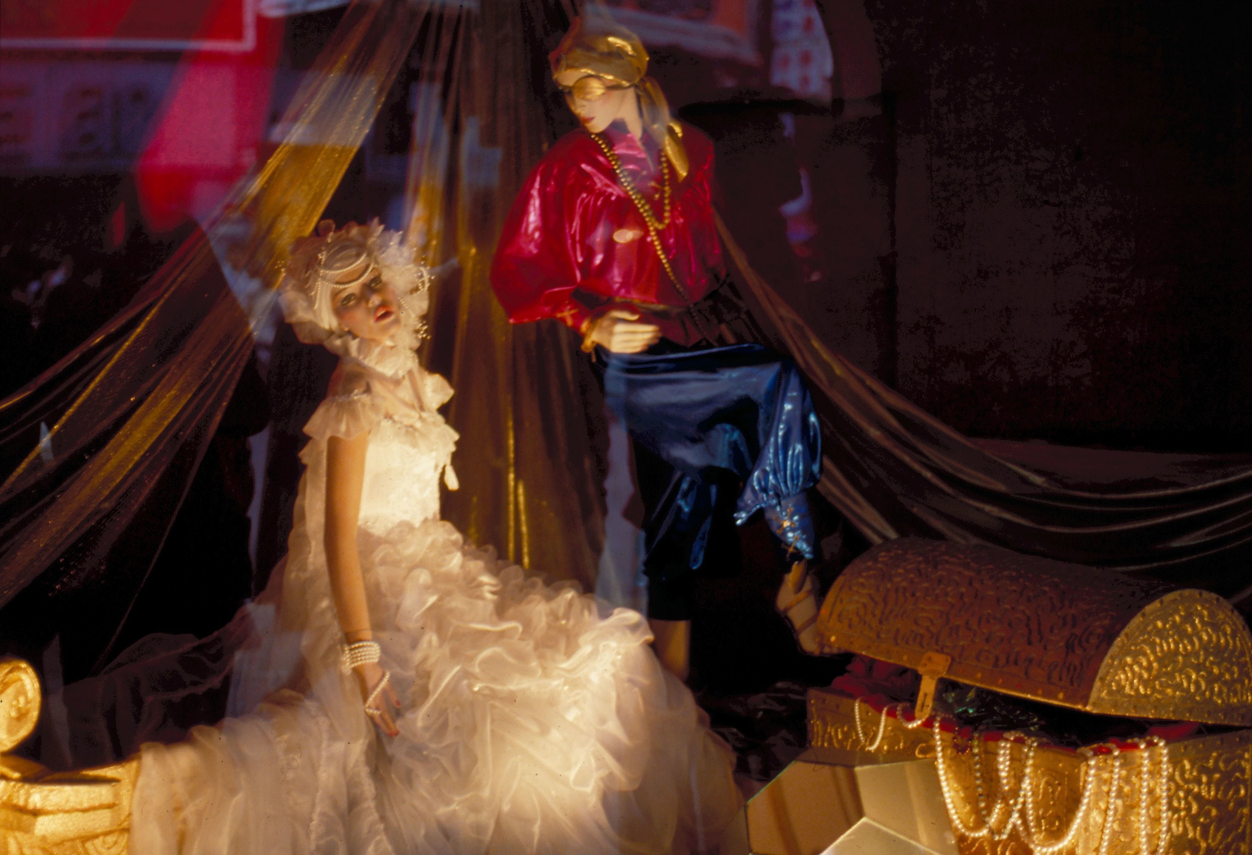 有一家百貨公司的櫥窗陳列了兩個戴毛線帽、繫圍巾、身著豔麗冬裝的模特兒,和一匹低頭覓食的白馬模型,在皚皚雪景中嬉戲,幾可亂真,吸引許多兒童圍觀。