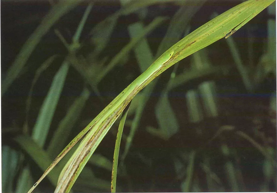 晚上停在五節芒葉上睡覺的南台草蜥,修長的身體和體色幾乎和五節芒葉一致,別說晚上,就連白天恐怕也很難發現它們。南台草蜥。