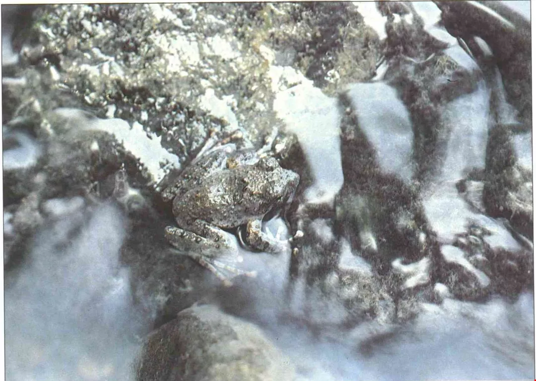 不同種類的蛙,生活在不同的棲地裡,它們各擁有與棲地融合的保護色。有的蛙甚至可以「入境問色」,隨棲地的改變而變換它的體色。圖為台北樹蛙。台北樹蛙。