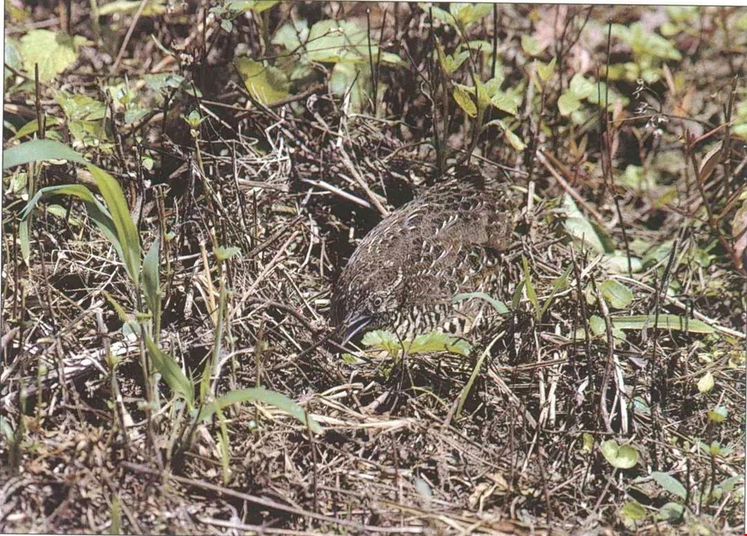 棕三趾鶉孵蛋的棕三趾鶉一動也不動,加上體色和巢邊的環境融合,不易被發現。