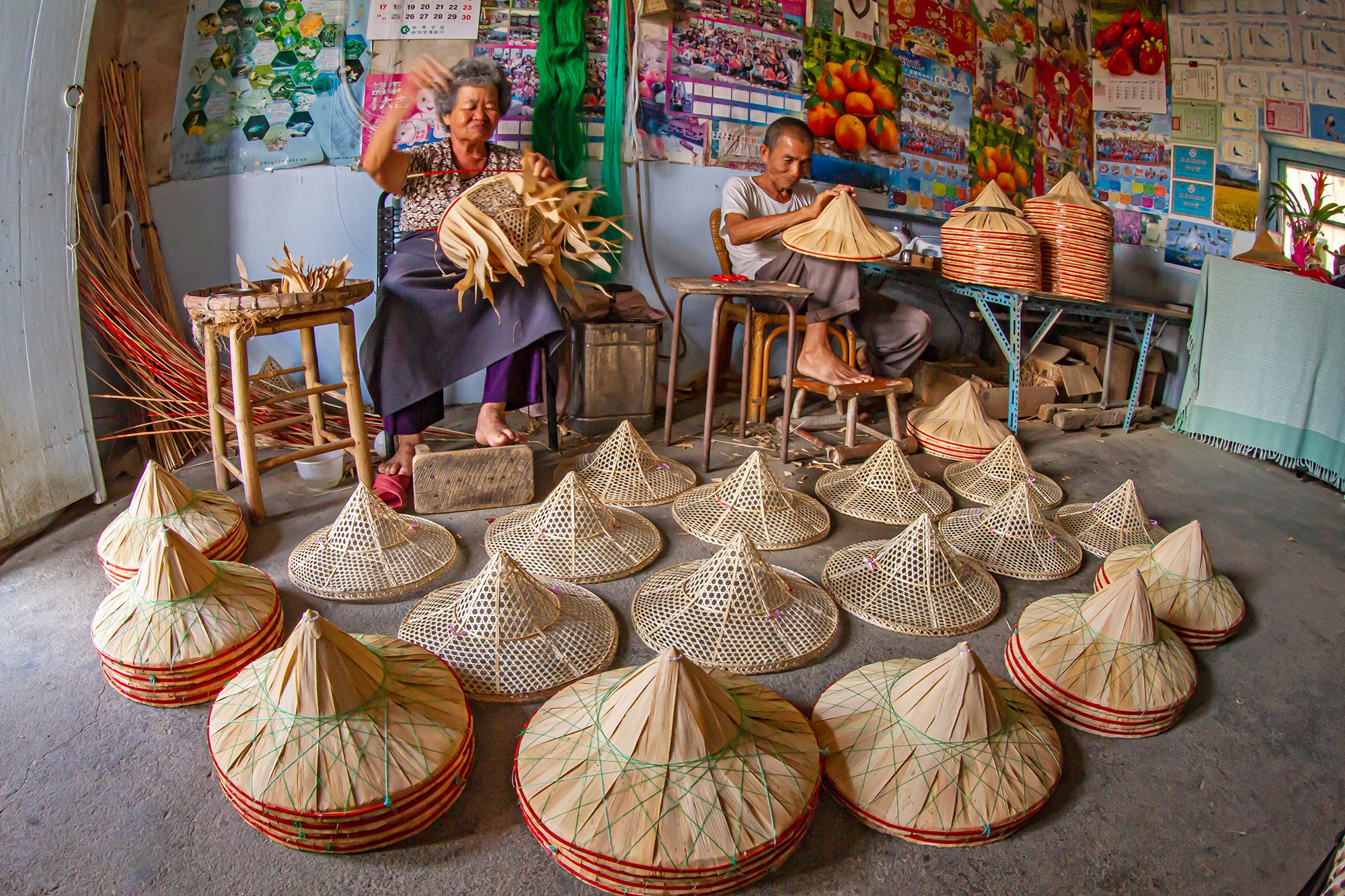 光華攝影徵件 縱橫經緯之間—台灣纖維植物與生活中的編織藝術 2023 5月 EN 日本語 分享: 穹頂上有花(王朝騰) 鹿野圓頂殿堂的藝術窗花,竹編穹蒼與拱門設計,呈現歐洲建築的的圓頂元素,使用竹、彈性繩、萊卡布、鐵件等編織而成,勾織的窗花形似教堂的彩繪玻璃手法,美輪美奐。 .竹編台灣(張秀凰) 台北花博的竹編藝術造景,寰宇庭園區之作品「台灣園」運用大量竹林、竹編技術呈現出寧靜的意涵,入夜之後整體氛圍更加迷人。台中花博竹編童樂趣(劉昭君) 竹編外觀、融合種子與中央山脈意象的台中花博竹跡館,在半開放式的竹造亭園漫步時,可以感受光與風的流動,建築結構與編織則將呈現出竹森林的型態,這座建築展現出台灣竹構工藝與城市美學,同時也讓民眾看見台灣工藝之美。做斗笠(劉昭君) 高雄內門編製斗笠是早期農家社會的傳統技藝。斗笠是農民在工作時,用來防雨遮陽的帽子。做斗笠現已逐漸成一項編織技藝,必須將竹葉一片挨著一片紮緊,再以竹篾箍住帽緣,熟稔這項技術的斗笠師傅最快20分鐘就能完成。民雄手工編草繩(陳秀美) 將冬天收割的稻草作為材料,曬乾後就能手工編製成草繩,同時兼具環保及重複使用之特性。竹山竹篾的編織(王明賢) 南投縣竹山鎮盛產竹子,當地人用竹篾,以經緯縱橫交錯的方式,將其編成器物,至於其編法,也因需求的不同,而採用不同的編組技藝工法,形成各種竹編器物。候車亭的藝術(利勝章) 候車亭是花蓮在地藝術家林進展的作品,在玉東國中校門口前,以竹編為主的拱形候車亭,是以秀姑巒溪為意象,一旁佇立一棵高大的竹球樹,則代表縣道193號15個散落的原住民部落,及上方原住民圖騰象徵著身上流淌的血液,裝置藝術結合在地元素十分吸引民眾目光。編織(許承睿) 位於花蓮吉安鄉干城部落,以苧麻編職為主(屬蕁麻科植物),每一位織女所編織出的紡織品代表著不同的意義,利用織布的技巧與紋路的變化來傳達心中的話語,不論對長輩的思念、孩兒的疼惜又或是對於文化的傳承等,皆展現出每件織成品獨一無二的特性。套圈遊戲(陳其軒) 利用收割後的稻草,編織成套環,進而製作非常環保的遊樂器材。在稻田旁設置的遊戲區,讓往來的民眾可以體驗傳統工藝。共生(利勝章) 共生是阿美族藝術家陳勇昌先生的作品,坐落於花蓮磯崎村。使用竹片編織而成,船型設計象徵善於海洋資源利用的阿美族、噶瑪蘭族及撒奇萊雅族,箭型則象徵善於狩獵的布農族人;各個物件各自獨立但又相互聯繫,比擬文化邊界有別的群體,因著共存的地理疆界形成的緊密關係。 關鍵字: 編織藝術 竹編 纖維 攝影 技藝 分享: