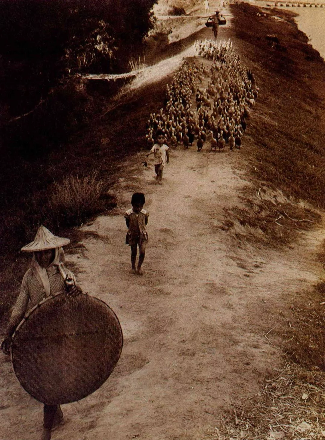 第一,他對「光」的處理與掌握,有獨到的分寸。「農夫出耕」中,早斜的晨曦照射在戲水的鴨群與行走中的農夫和耕牛上,路面的陰影恰到好處地襯托出主題的立體感與畫面的縱深度,不多一分,不少一分,「光」在這兒,有了生命與情感的動人啟示。