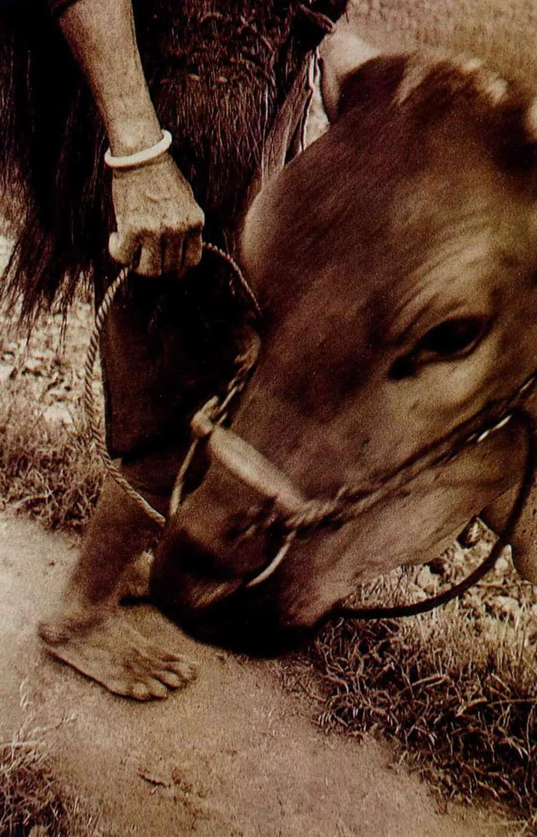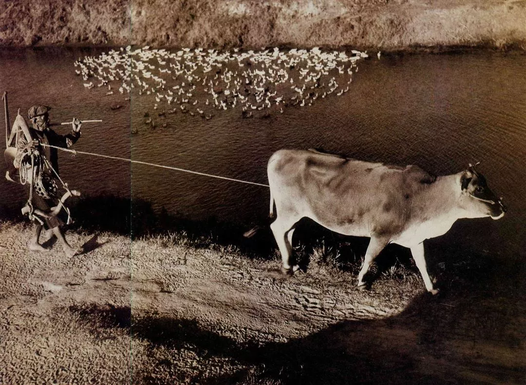 (右)老太婆與牛/台南/1963。(謝震隆)
