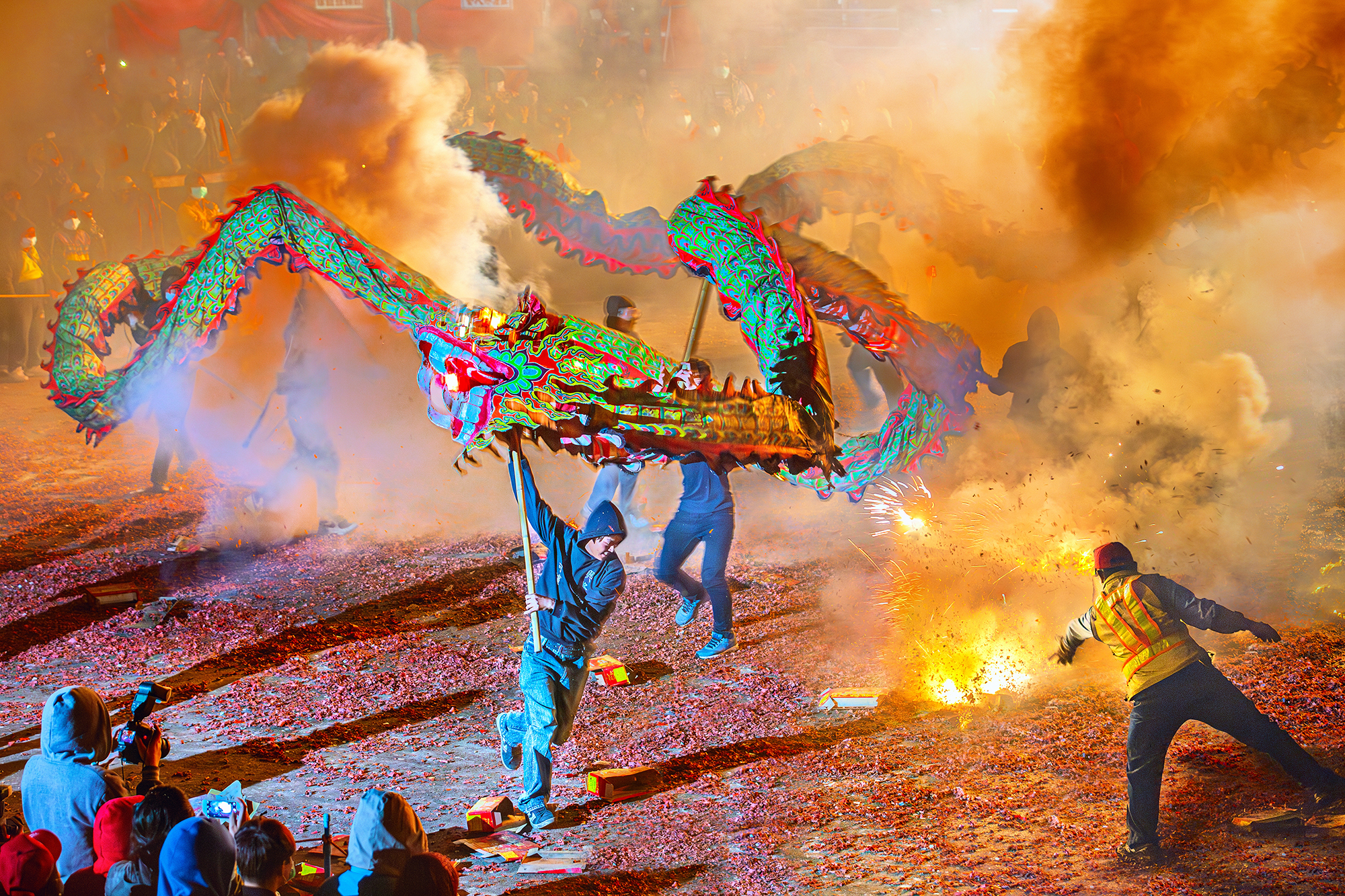 《光華》攝影徵件 民俗與生活—年味台灣 2024 2月 EN 日本語 分享: 苗栗火旁龍(林民基) 火旁龍是苗栗客庄新春慶元宵的傳統民俗活動,祥龍穿梭炮陣,鑼鼓喧天,看起來就像神龍翱翔在雲霧般,藉以趨吉避邪、迎春納福。 .賀新年(許承睿) 宜蘭傳藝中心於農曆春節有舞獅團表演,靠舞者的動作表現出獅子神態,一般二人舞一頭獅,搭配鑼鼓的聲響,迎接熱鬧的新年;醒獅逗趣的跑跳,演出活靈活現,獲得民眾的掌聲及喝采。迪化年貨大街(張秀凰) 台北年貨大街是台灣最具代表性的年節活動,熱鬧的迪化街吸引辦年貨的民眾們前往大採購。書法家揮毫寫春聯(張秀凰) 為了迎新年,書法家現場揮毫書寫春聯致贈給民眾。春聯的紅色代表喜氣,以書法及繪畫的形式呈現新春祝福,感受濃濃的年節味。炊年糕(張利聰) 過新年時,幾乎都準備甜粿、發粿、菜頭粿等食品,象徵新的一年吉祥如意。此時店家正忙著炊年糕,空氣中散發出甜甜的香氣。蒸紅龜粿(王朝騰) 習俗上,拜紅龜粿在祭祀後食用有「呷平安」的隱喻。紅龜粿不單只是好吃,更具有很多意義;紅色的外皮象徵著吉祥,粿的圓形則是團圓和氣的象徵,並有長壽、吉祥、富貴的涵義。過香爐(林格立) 過香爐,也稱過火。民眾紛紛圍繞到香爐前參拜,將平安符過爐繞三圈,祈求神明加持保平安。飛龍在天(黃慧琴) 鹿港的街道是最有年味的「花燈大道」,要騎著腳踏車才能邊騎邊欣賞。花燈以龍的造型懸吊在街道上,夜晚的光影燦爛,吸引民眾參觀。台味燈節(林格立) 台南普濟殿外的1,500盞彩繪燈籠,懸掛在廟埕街區,一盞盞球形的燈籠都是在地居民想像的揮灑,是最「台灣味」的燈會。天燈(舒崴) 過年期間,新北市十分風景區舉辦天燈節,吸引許多遊客慕名而來。天燈緩緩升空的景象,在空中閃爍,祈求願望實現,是台灣極具魅力的文化活動之一。 關鍵字: 年節 習俗 分享: