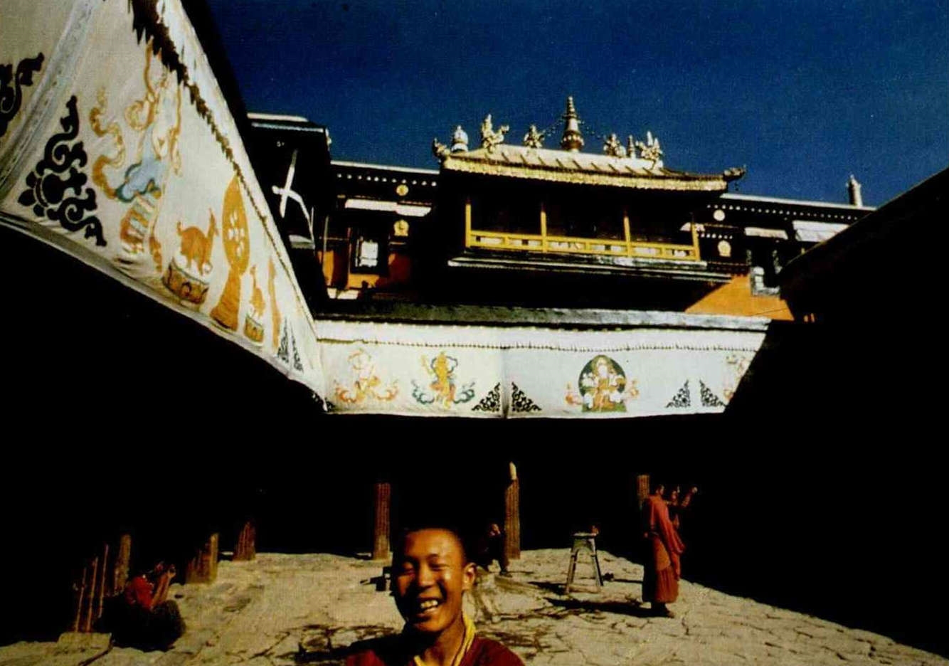 秘境西藏 文‧李光真 圖‧梁家泰 1988 1月 EN 分享: 藏人的精神堡塔,奉祀文成公主的大昭寺。圖為大昭寺天井。(梁家泰 文.李光真) 犛牛、青稞、酥油茶 達賴、天葬、大昭寺 在有情的鏡頭下 熟稔而又陌生的雪鄉 於焉開展—— 布達拉宮與經咒中的六字真言。(梁家泰 文.李光真)位於布達拉宮後面的藥王山。相傳山岩土灰可以治病。(梁家泰 文.李光真)山巒與雪峰綿延不絕的藏東察皮拉山,是典型的西藏山岳之一。(梁家泰 文.李光真)藏人在屋頂上曬青稞。青稞曬乾炒熟、研磨成粉後製成的糌粑是藏人主食。(梁家泰 文.李光真)布達拉宮依山而建,走勢曲折。圖為其進出口的階梯和轉折處。(梁家泰 文.李光真)這個朝聖的家庭由父母攜著年幼的子女,正準備前往哲蚌寺膜拜。(梁家泰 文.李光真)青稞可釀酒又可製糌粑,在西藏高原到處可見。(梁家泰 文.李光真)穿戴華麗戲裝與頭飾的「藏戲」演員。(梁家泰 文.李光真)酥油茶加鹽,解渴祛寒,是藏人的重要享受之一。(梁家泰 文.李光真)正在研讀經文的札什倫布寺喇嘛。(梁家泰 文.李光真) 分享: