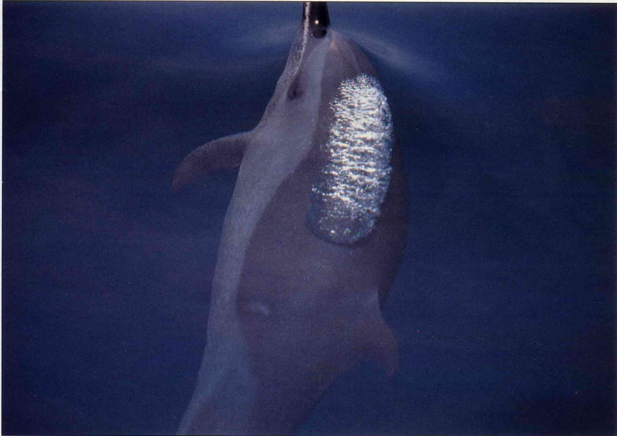 身上的斑點,隨著年齡漸趨明顯,牠們愛在船前潛游,