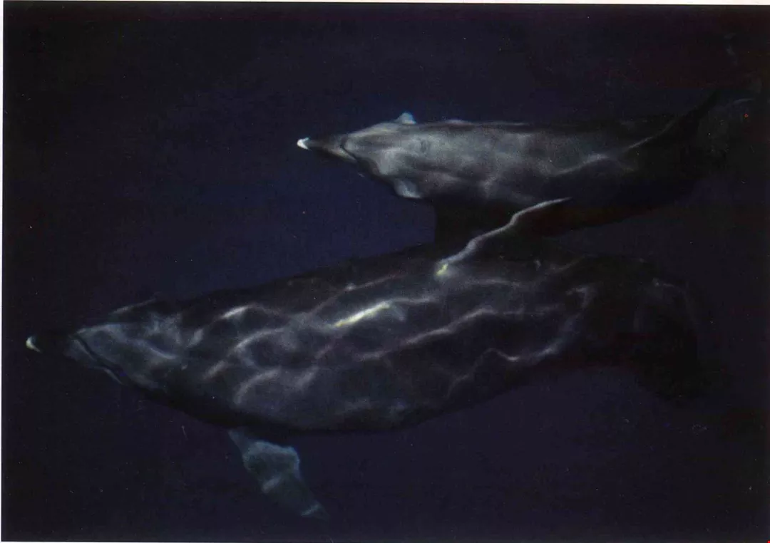 啄鯨 深海的掠食者,猶如鳥嘴般的吻喙,無論潛水長度、深度和遊進速度,它們都遠遠超越我們的能力及想像。是一種只能遠望的鯨種。 楊世主攝。