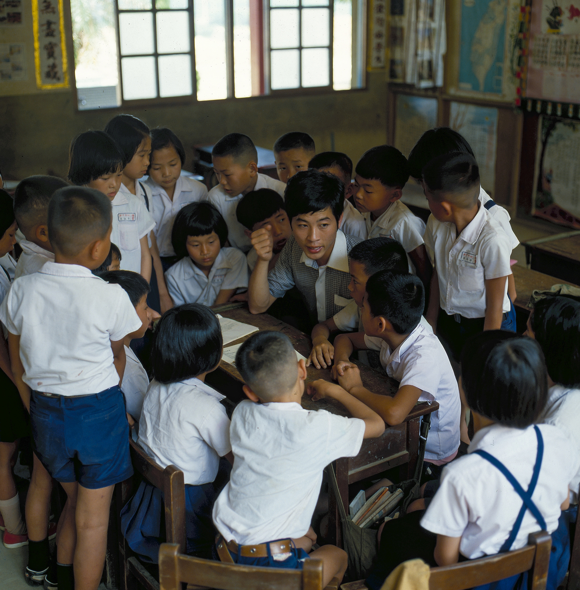 光華50老照片回顧—— 教育篇 2026 3月 EN 分享: 位於苗栗縣後龍鎮的海寶國小,是台灣兒童童詩的發源地。圖為張秀明老師指導學童創作童詩,小朋友都很有興趣地專注聆聽。(曉夢攝) ——《光華》1981年6月號〈童言童語寫童詩〉 龍安國小的小學生專注地操作電腦,旁觀的小朋友也都看得入神。(簡永彬攝) ——《光華》1985年10月號〈細數資訊化的籌碼〉 金華國中創立於1937年,當時稱「台北市立家政女學校」,為當時唯一實施職業教育的女子學校。1968年因實施九年國教,更名為台北市立金華女子國民中學,1989年開始兼收男生。圖為學生正在進行用電安全的課程,在學生身後的黑板上,寫著用電安全的守則,女學生們圍在桌旁,觀看著使用熨斗整燙裙子的過程。(李培徽攝) 1956年,台東縣綠島國民學校校園一景。(外交部圖庫資料) 1973年台北市仁愛國中學生新生活實踐隊在社區服務,學生們舉著生活標語,呼籲住戶們響應新生活運動,透過熱心助人的棉薄之力,喚醒社會對偏遠貧困地區的注意。(李培徽攝)1968年美國農業部部長傅利曼(手持球者)參觀桃園中山國小表演,與身著原住民表演服裝的小學生們合影留念。(沈鑫南攝) 美國西海岸新聞界訪華團1976年參訪台北市老松國小,觀賞小朋友整齊精確地排出十二道光芒。(馮國雄攝) 1971年老松國小的同學將手中旋轉的扯鈴拋到空中後,再準備接回。(孟慶常攝) 「找找看,我的名字在那裏?」在聯考時代,放榜是家長及學子最為緊張的時刻。(邱瑞金攝) ——《光華》1991年9月號〈毛高文挑戰「聯考怪物」〉 教科書統編本開放以後,升學考試該何去何從?溽暑時分,大學聯考考生在各考場揮汗如雨、振筆疾書、家人在旁侍候食物茶水的畫面已成絕響。(張良綱攝) ——《光華》1989年9月號〈教科書也「解嚴」〉 空拋學士帽有種灑脫的豪情,台大畢業生跨出校門,活力迎向未來。(莊坤儒攝) ——《光華》2014年7月號〈恭喜你,畢業了!〉 在深不可測的大海中游泳,難度及危險性頗高,但野柳國小發展了海泳課,包括獨木舟、海上自救課程,讓孩子們熟習海洋知識。(莊坤儒攝) ——《光華》2013年11月號〈海洋運動──水中悠遊小蛟龍〉 曲全立導演發起美力台灣計畫,用行動電影車讓3D電影可以下鄉,孩子們體驗如現場般的畫面,每個人都看得驚呼連連。(莊坤儒攝) ——《光華》2023年8月號〈小徑上的移動風景〉 為推展林下經濟,南庄蓬萊國小校長林恩惠,在森林裡進行養蜂環境教育。(林格立攝) ——《光華》2020年5月號〈生產與生態的平衡〉 .美髮設計師的養成之路不易,尤其是台版的坐洗功夫,上課、見習還不夠,沒練個幾個月很難上手。圖為能仁家商學生見習實作場景。(林旻萱攝) ——《光華》2023年3月號〈台版獨有美髮經濟──坐式洗頭的百變趣味〉 為推廣攀樹運動,翁恒斌深入校園,讓學生體驗攀爬校園內的大樹。(莊坤儒攝) ——《光華》2019年2月號〈站上高處的視角──為樹服務的攀樹師〉 台灣師範大學的華語文教學中心,吸引許多國際學生前來學習中文。(莊坤儒攝) ——《光華》2014年8月號〈華語教學──佈局全球〉 關鍵字: 光華50 教育 聯考 老松國小 學習 體育 攝影 教育 藝術 歷史 親子 考試 分享: