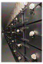(左圖)一朵小小的白玫瑰,讓生硬的冷凍櫃溫暖了許多。台北市第二殯儀館在禮堂布置、移靈走廊都作了全新的布置,一改殯儀館過去恐怖陳舊的模樣。