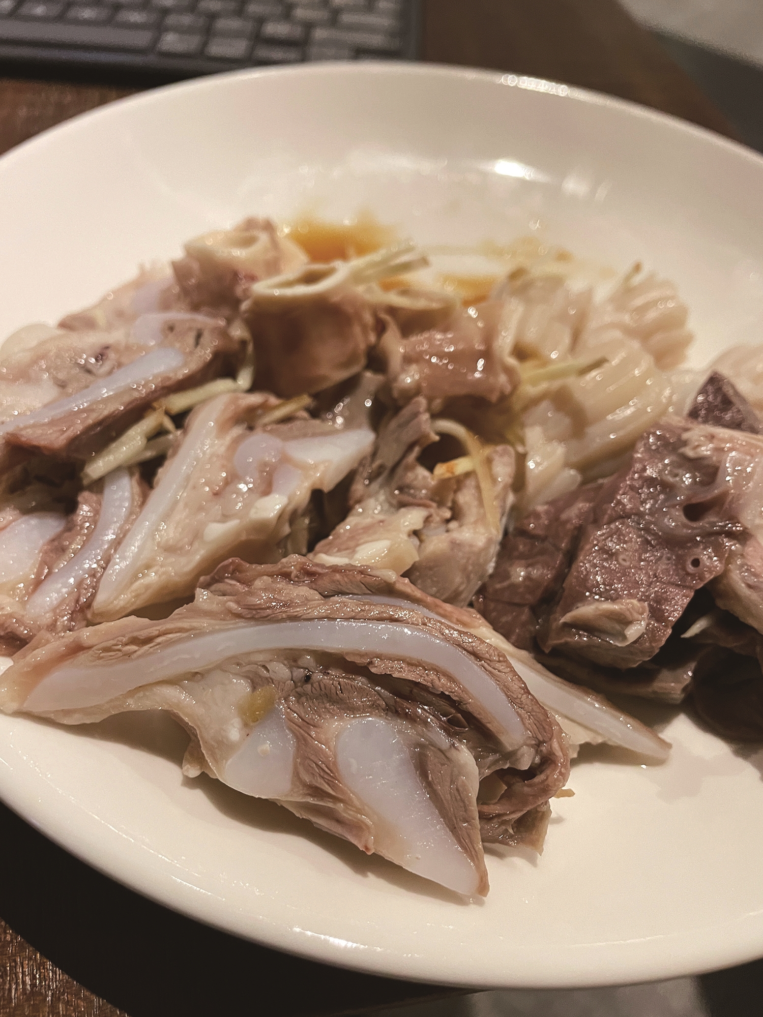 基本上任何部位的肉都能白切,除了單價過高的里脊,只要烹飪得宜都很美味。(台北涼州街米粉湯)