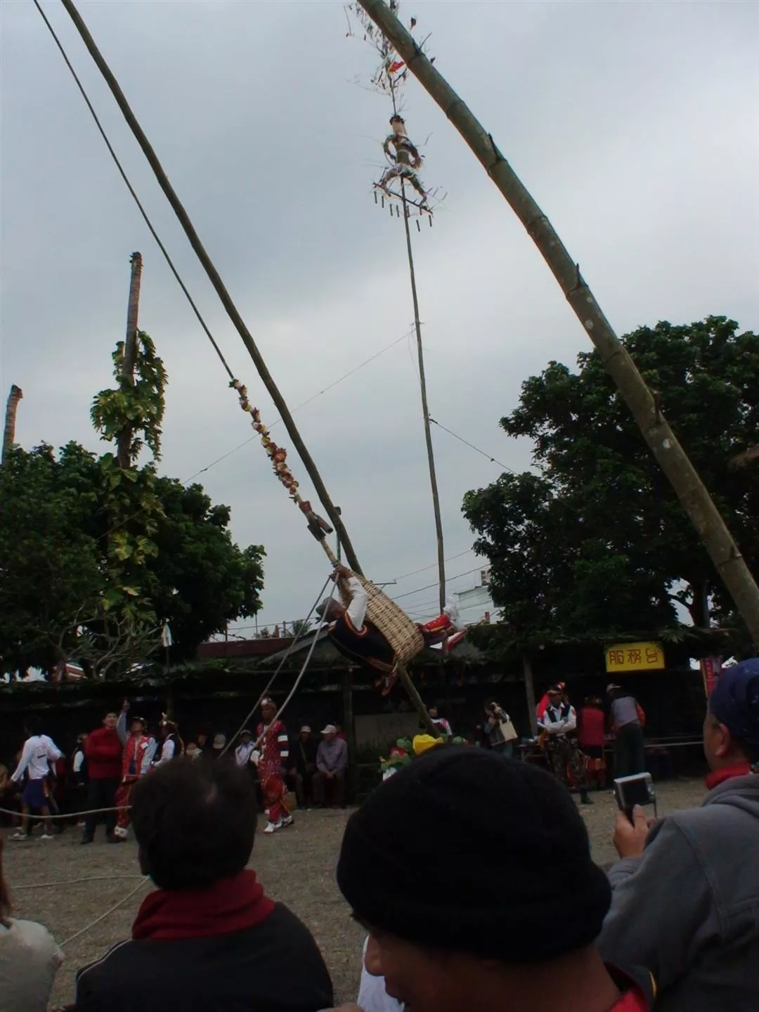 臺東市建和村卑南族收穫祭,集會所中央用刺竹豎起精神標竿(talringel)。