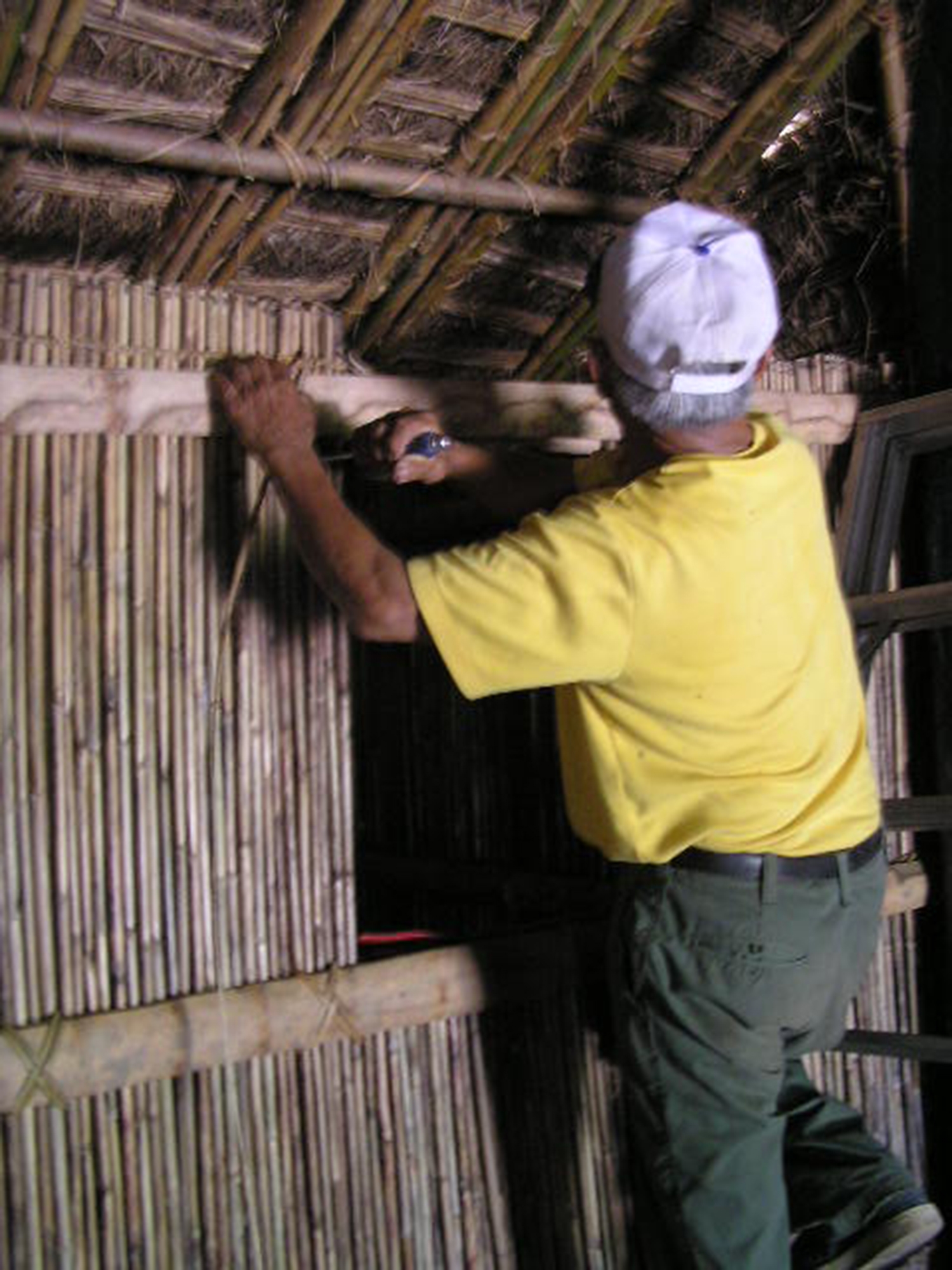 排灣族使用臺灣芒的莖梗,編築家屋內的小米倉。