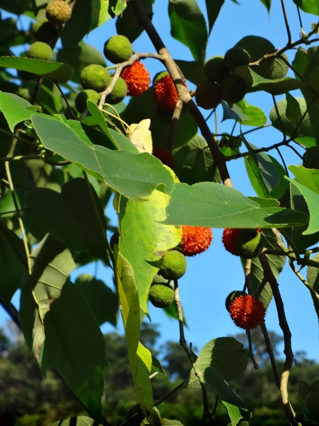 雌雄異株的構樹,雌株透紅的成熟果實,是野生動物的重要食物。