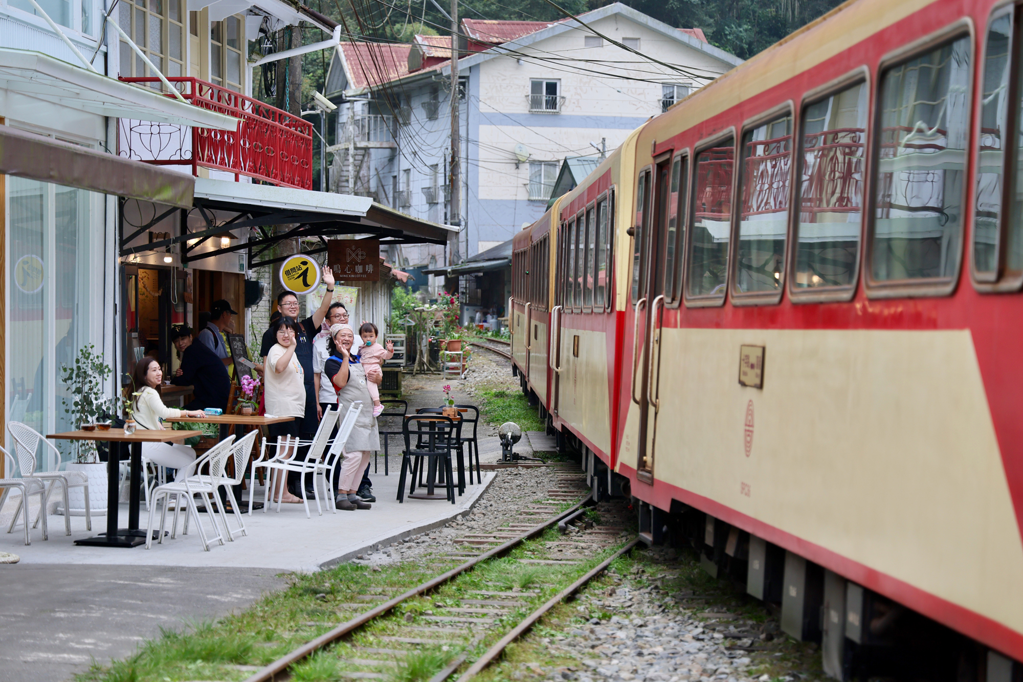中午時分,小火車沿著彎彎的軌道緩緩進站,滿懷笑容的居民,用真摯熱切的招呼,傳達貼心的溫暖。(吳明翰攝)