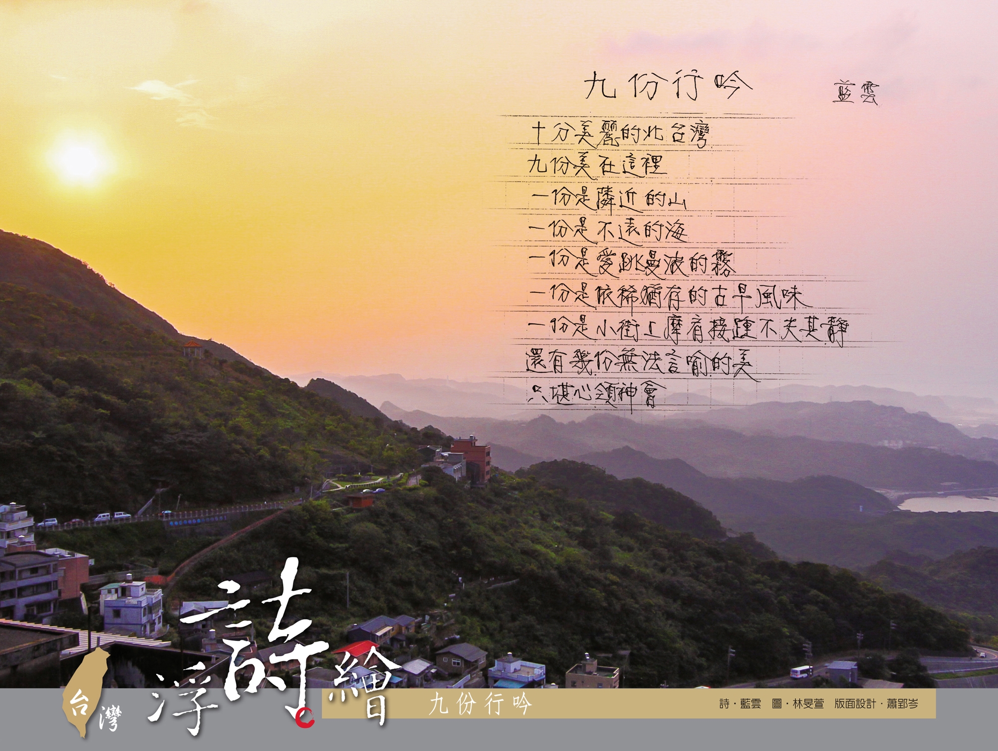 九份行吟 文‧藍雲 圖‧林旻萱 2017 3月 分享: 九份行吟 十分美麗的北台灣 九份美在這裡 一份是鄰近的山 一份是不遠的海 一份是愛跳曼波的霧 一份是依稀猶存的古早風味 一份是小街上摩肩接踵不失其靜 還有幾份無法言喻的美 只堪心領神會 台灣 文學 分享: