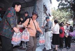 拿著戶口名簿買米酒,台灣史上頭一遭。加入世貿組織後,米酒稅率不降反增,台灣再度掀起搶購米酒熱。(林格立攝)