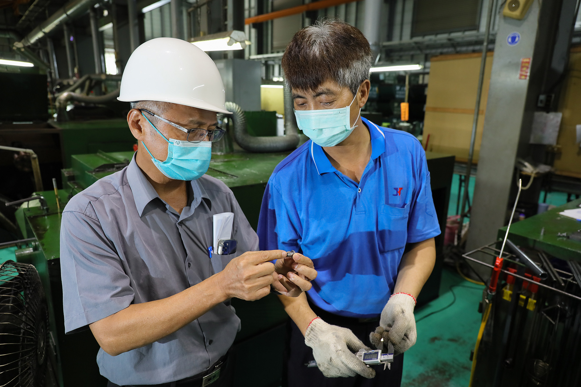 產業顧問林進焜(左)一路協助宣立鑫(右)設廠轉型,毅程因為有貿易商的經驗,更了解客戶的產品需求。