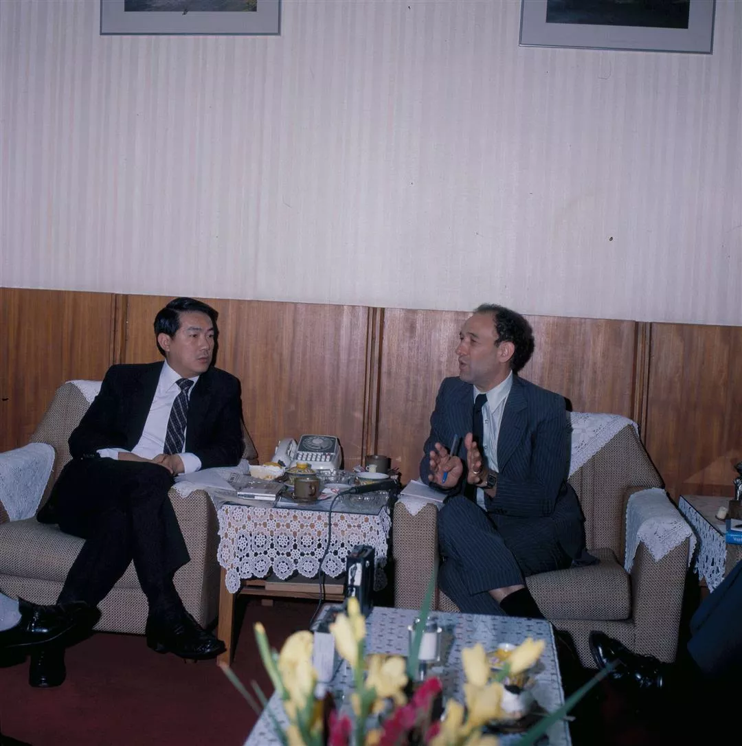 (行政院新聞局宋楚瑜局長與傅高義教授)。