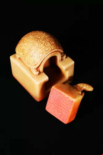 其次,是老坑出品的比新坑為佳,因形成時間久遠,石質縝密、表面較溫潤;新坑的石質則較鬆嫩,容易壞損。「有了好的印石傳家寶,還要搭配好的篆刻師、名家落邊款,才能讓寶物相得益彰。」若是電腦刻石,只是一般的「開運」,缺乏靈性;許多名篆刻師同時是鑑賞行家,他們對於「不對」的印石,不會輕易下刀。