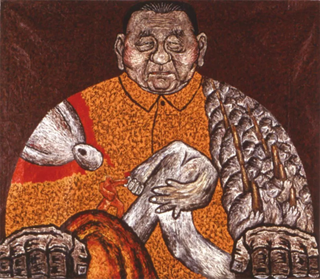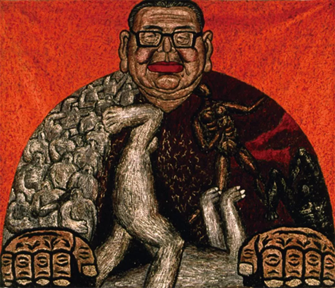 他陸續發表權威體制社會變貌的《傷害症候群》系列,以及以兩岸統治者蔣介石、毛澤東等強人為題材《四個時代》系列巨幅畫作,切中時代焦點;在北美館舉辦個展時,引爆民眾爭相觀摩的盛況。
