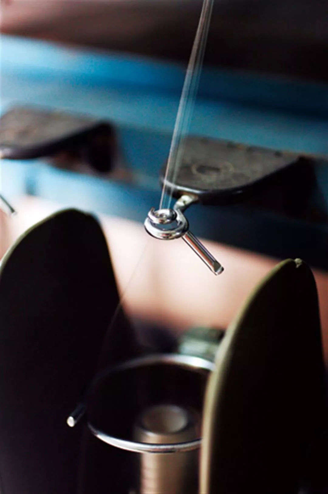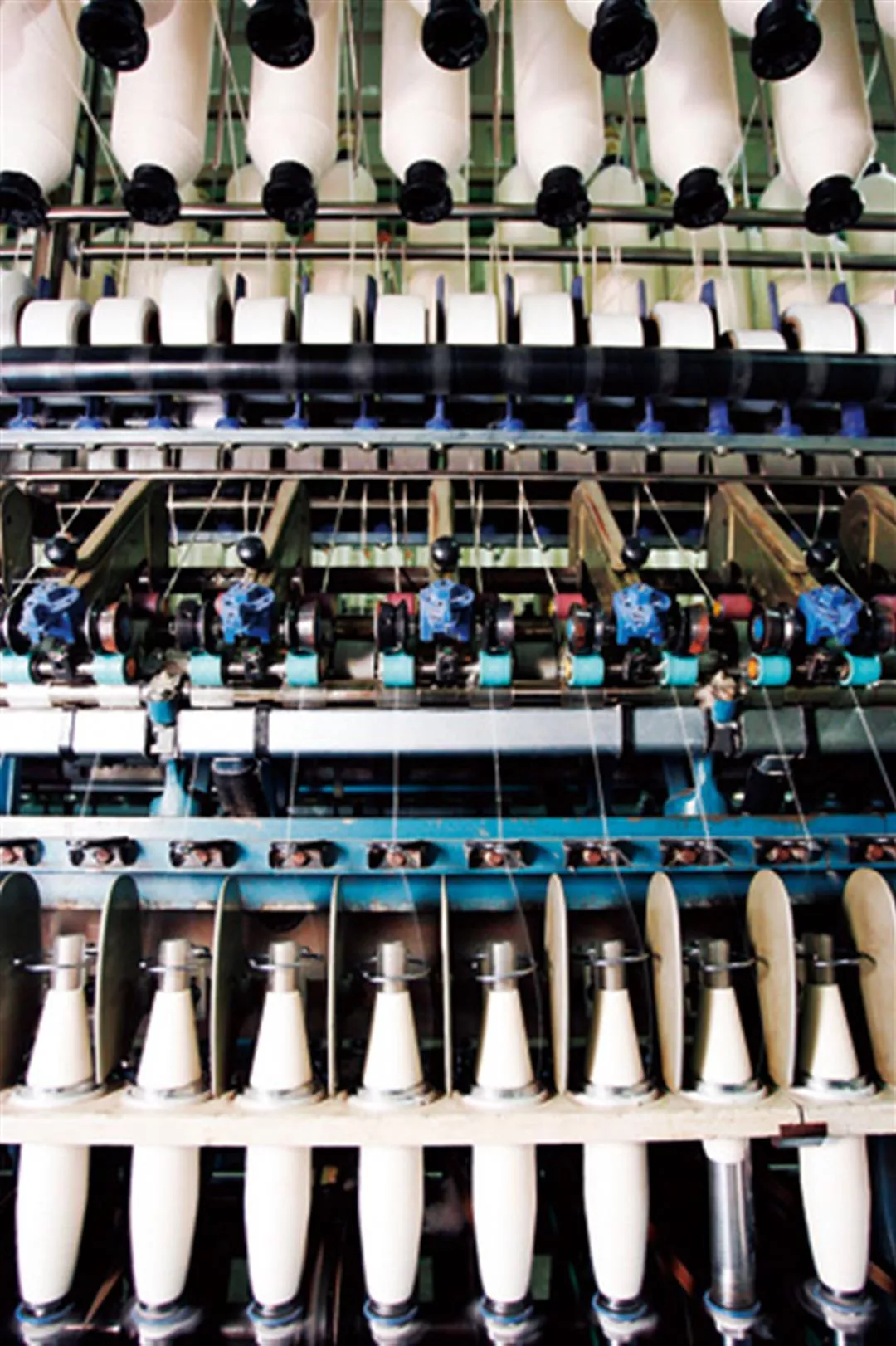 應用範圍極廣,且很容易與棉、毛混紡的聚酯纖維,其原料與寶特瓶「系出同門」,故可「反向」操作再製。圖為越南台商紡織廠的抽絲及製作「紗錠」場景。