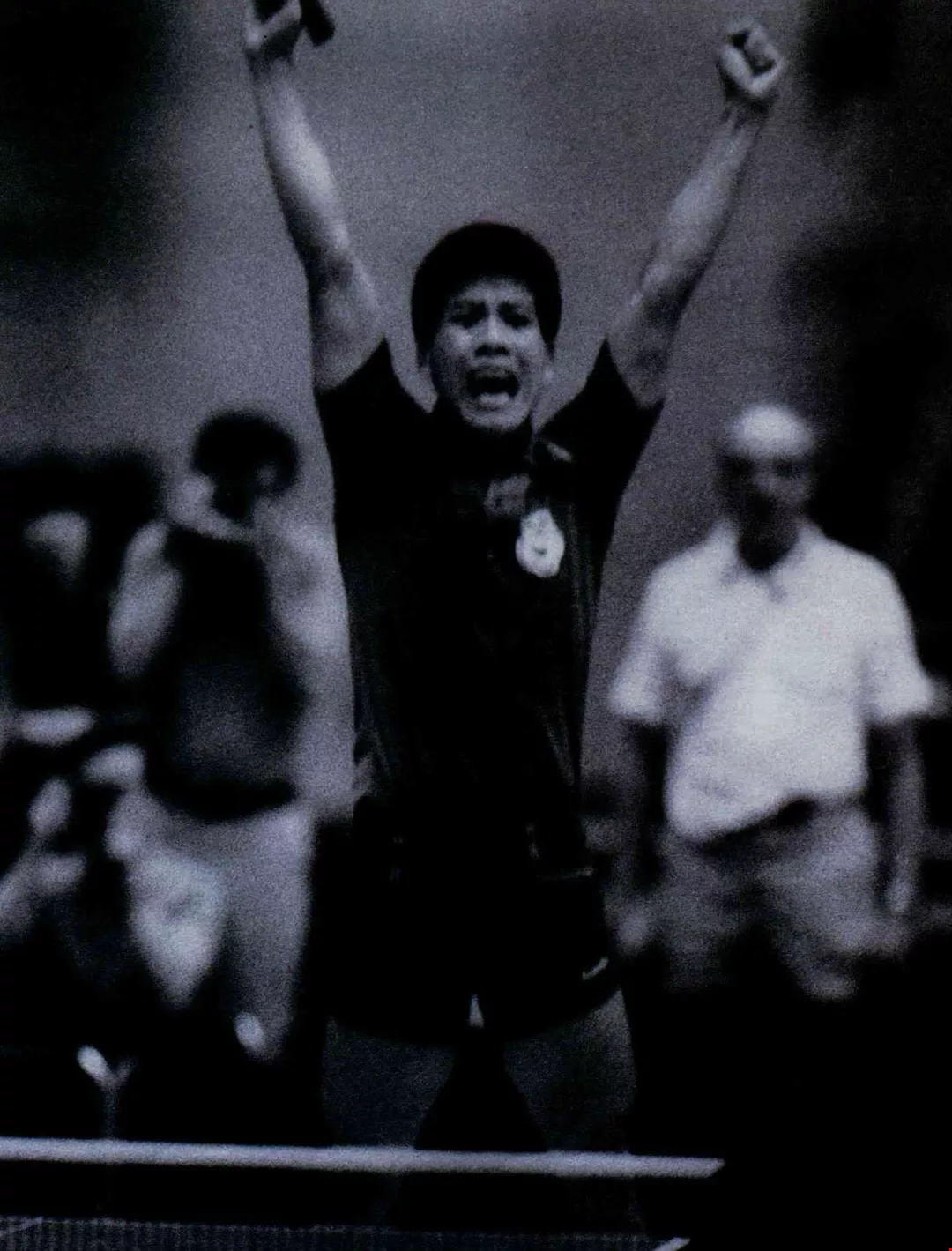 打敗高手真是一件快樂的事,我跳起來,跑過去抱住教練,我們好像在迎接一件期待已久的事,兩個人的眼眶都紅了。那時我突然想到,應該給經常替我們燒飯、洗衣的師母一通電話。你相信嗎?這是我打敗江加良後想到的第一件事。