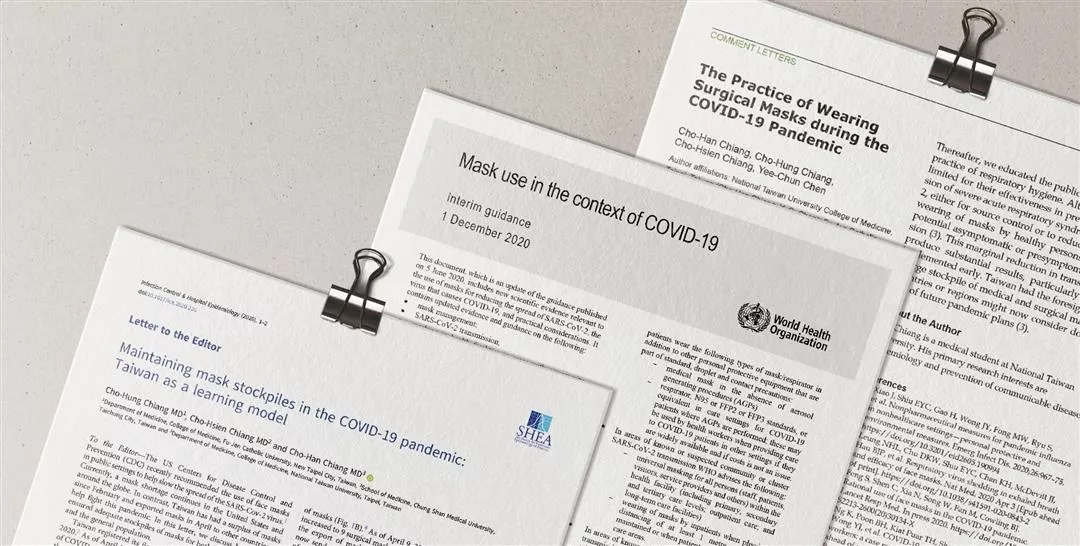 許多朋友都在新加坡的江卓鴻,他同步關心兩地的疫情發展,比較台灣與新加坡的案例,歸結出口罩能有效防疫,他將研究的結果投稿《Emerging Infectious Diseases》和《Infection Control & Hospital Epidemiology》等國際期刊,獲得刊登。還曾收到美國《New York Times》記者來信,探問更多台灣防疫的細節。世界衛生組織直至去年六月才更新防疫建議,呼籲保持社交距離與戴口罩的政策。12月,世界衛生組織發布的防疫指南中,也納入了江卓鴻的文章為佐證。