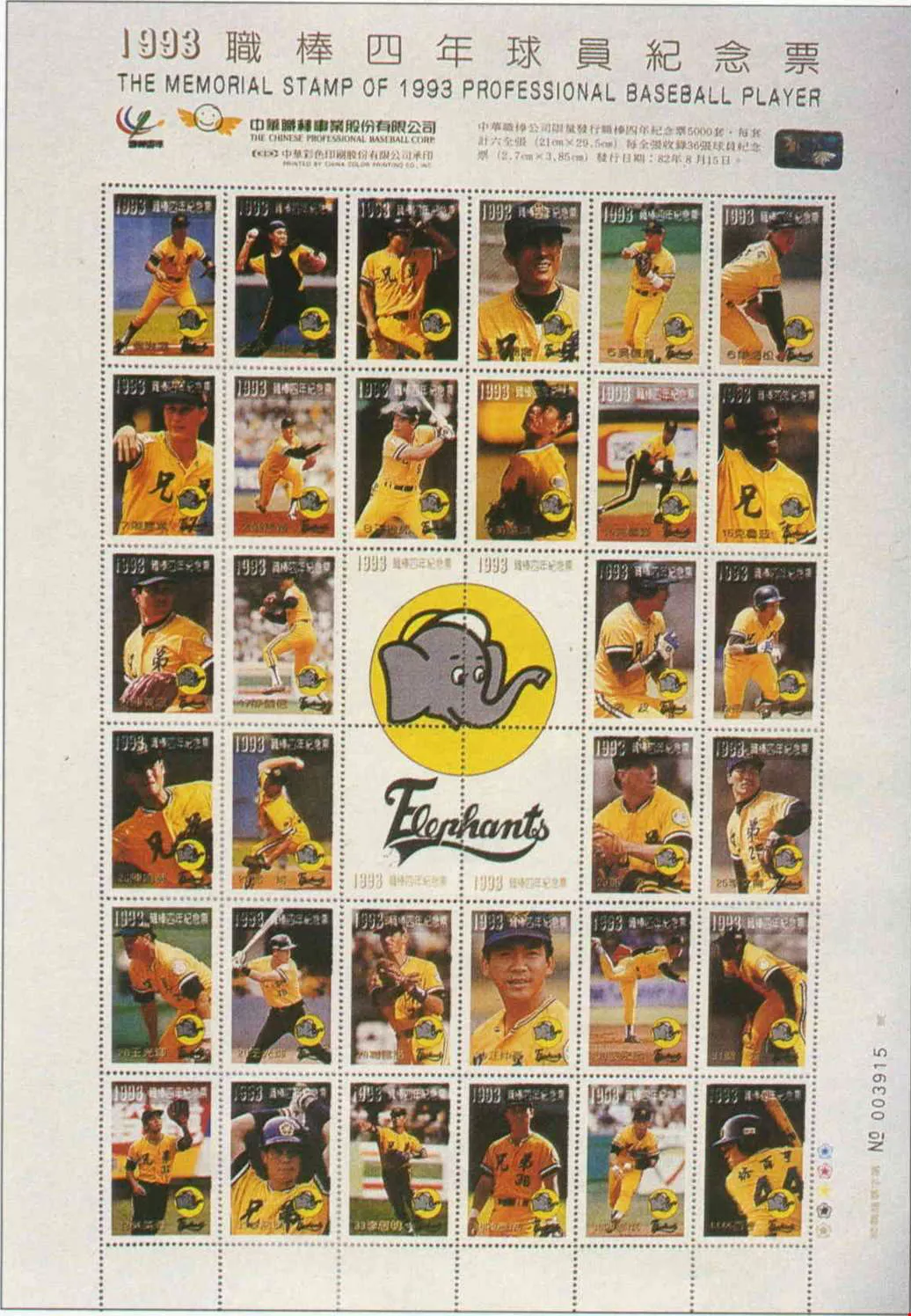 隨著職棒人口的增加,與職棒運動相關的行業也因應而生,圖為中華職棒公司發行的職棒四年球員紀念票。(薛繼光翻攝)
