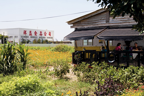 雲林口湖鄉祥益食品公司老闆娘李秋霞,人稱「米粉姐」,是1994年神農獎得主,從事米粉製造之餘,也積極參與當地休閒農業協會的運作,為遊客設計米粉菜單。上圖為李秋霞端著與協會成員一起設計的夏日涼拌蔬果米粉。
