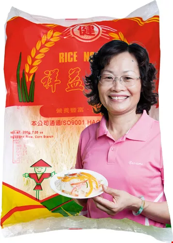 祥益食品除了自創「無敵金剛」及「健」品牌的新竹米粉之外,熱情、積極的老闆娘12年前成功研發添加鈣質的米粉,並打入台糖門市的銷售管道。