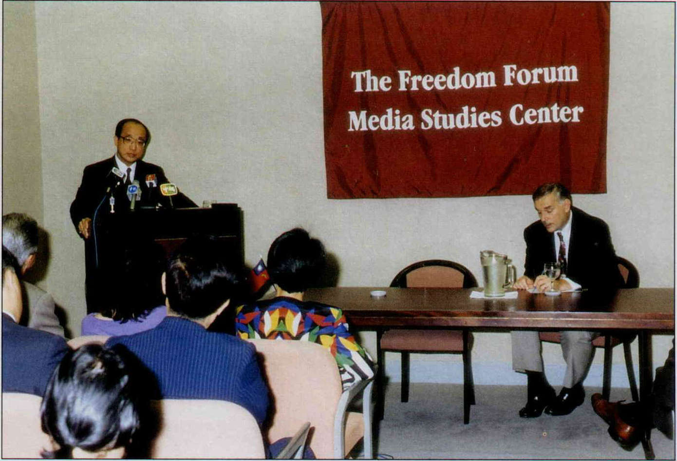 為參與聯合國,日前朝野立委官員紛紛組團訪美,希望將此地同胞的心聲宣達海外。圖為新聞局長胡志強應邀在紐約哥倫比亞大學發表演說。(新聞局提供)
