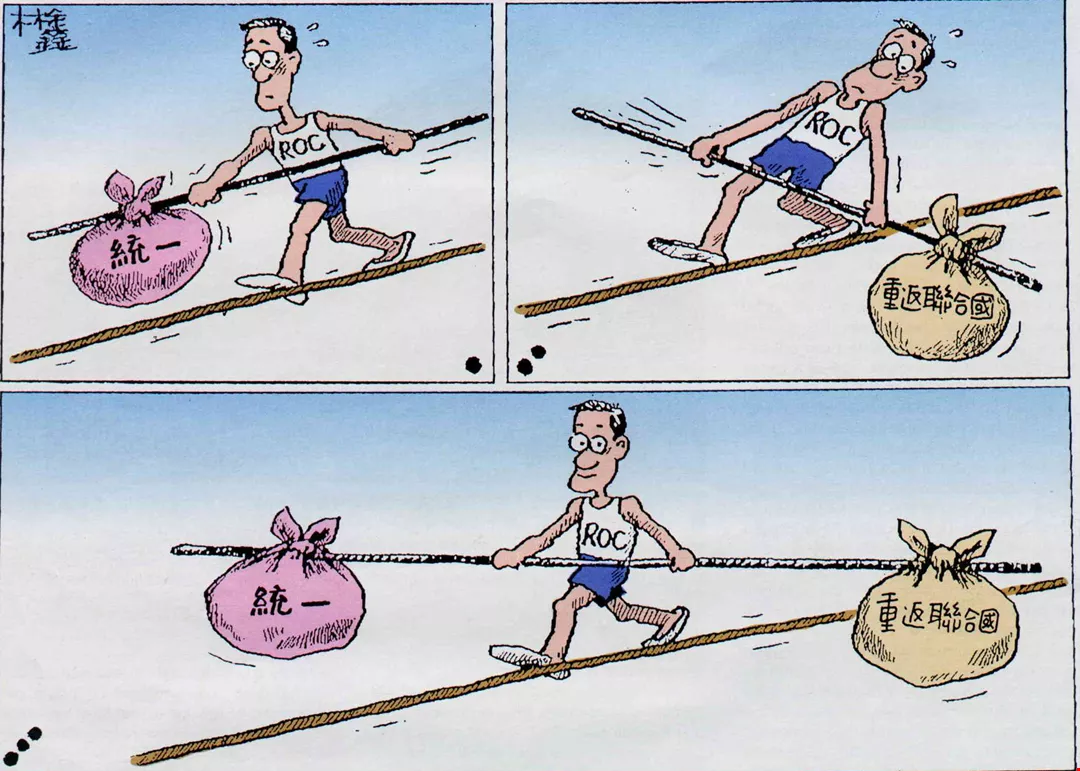 或許,猜忌疑慮之所以這麼容易引發,正如政治漫畫家林鑫,把政府欲兼顧「國家統一」和「參與聯合國」的情勢形容為「走鋼索」;邱進益也承認我們既要遵守「一個中國」的政策,又要強調「在台灣的中華民國」有獨立主權,的確有兩難之處。