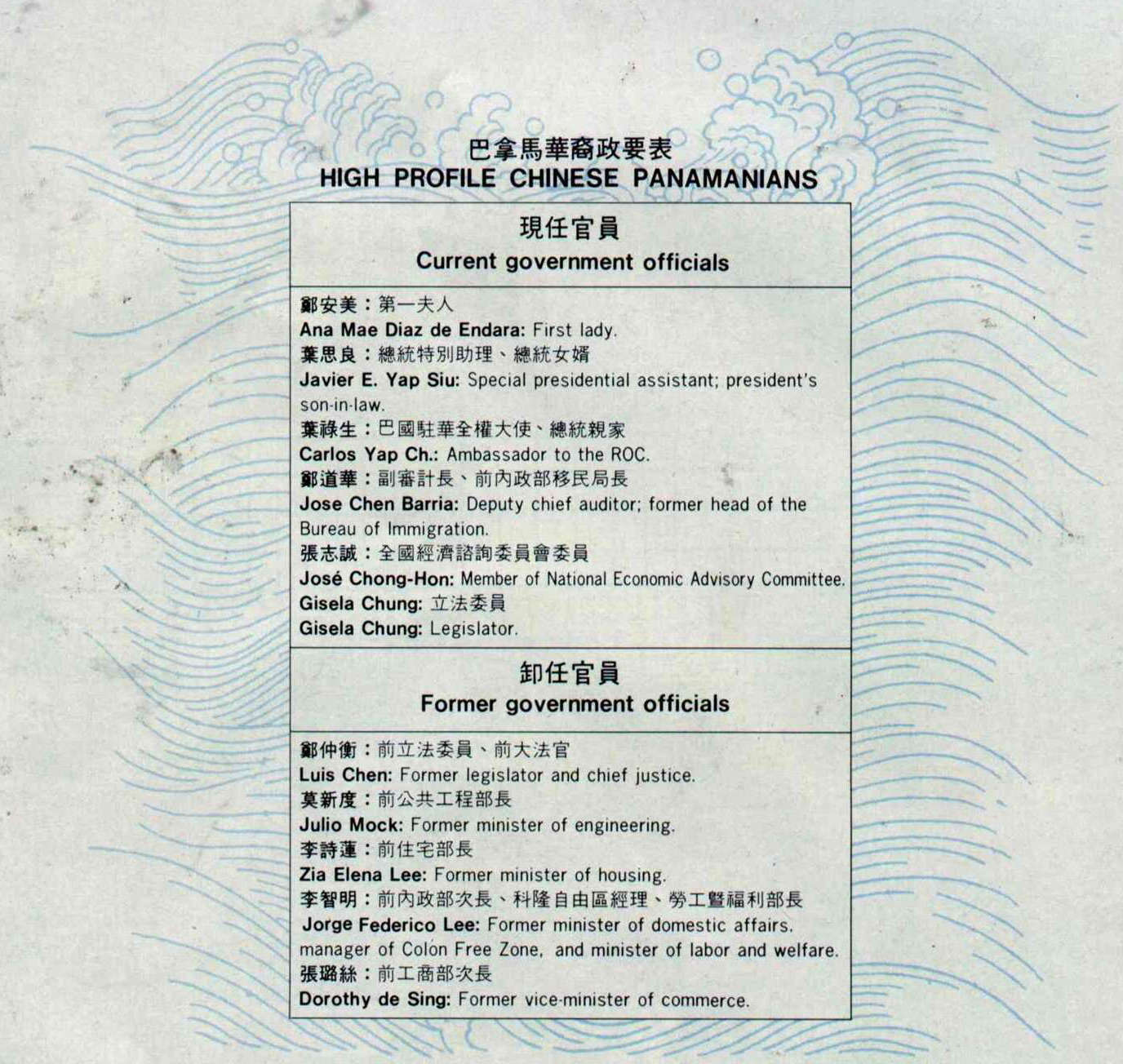 巴拿馬華裔政要表。(張良綱)