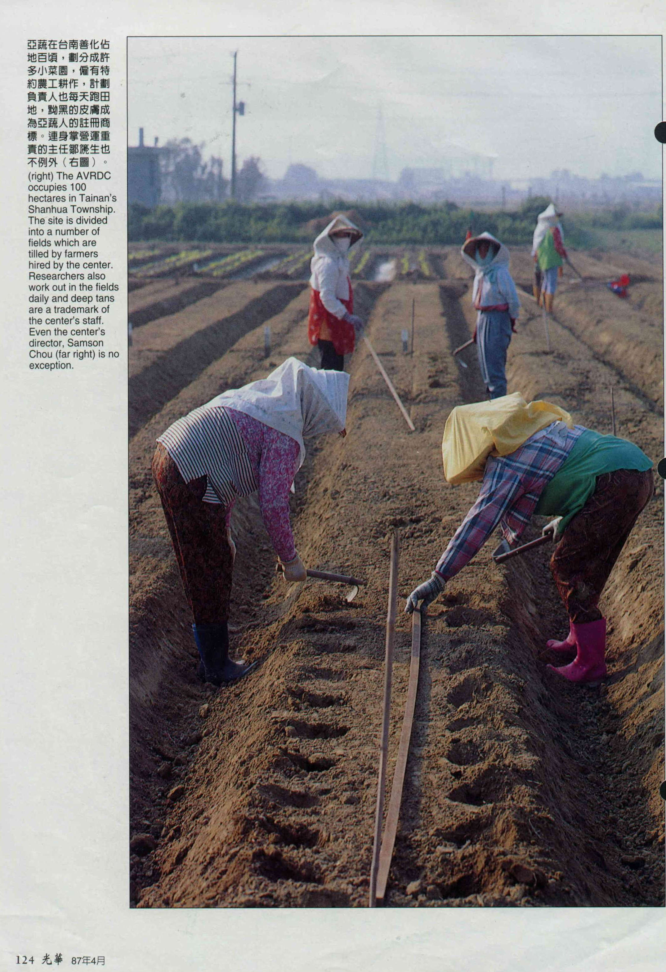 八○年代後期,研究成果逐漸顯示出來,幾次國際評估,亞蔬技術都名列前茅,而當時國際重提綠色革命,亞蔬因為錢少,得花在刀口上,研究題目便選得很精準細密,成果也特別顯著。而之前,國際上為幫助剛開放的大陸而於八二年在泰國成立亞蔬分部,我們的技術和種子也進入大陸,到現在已經建立和七抴X個據點之間的交流。