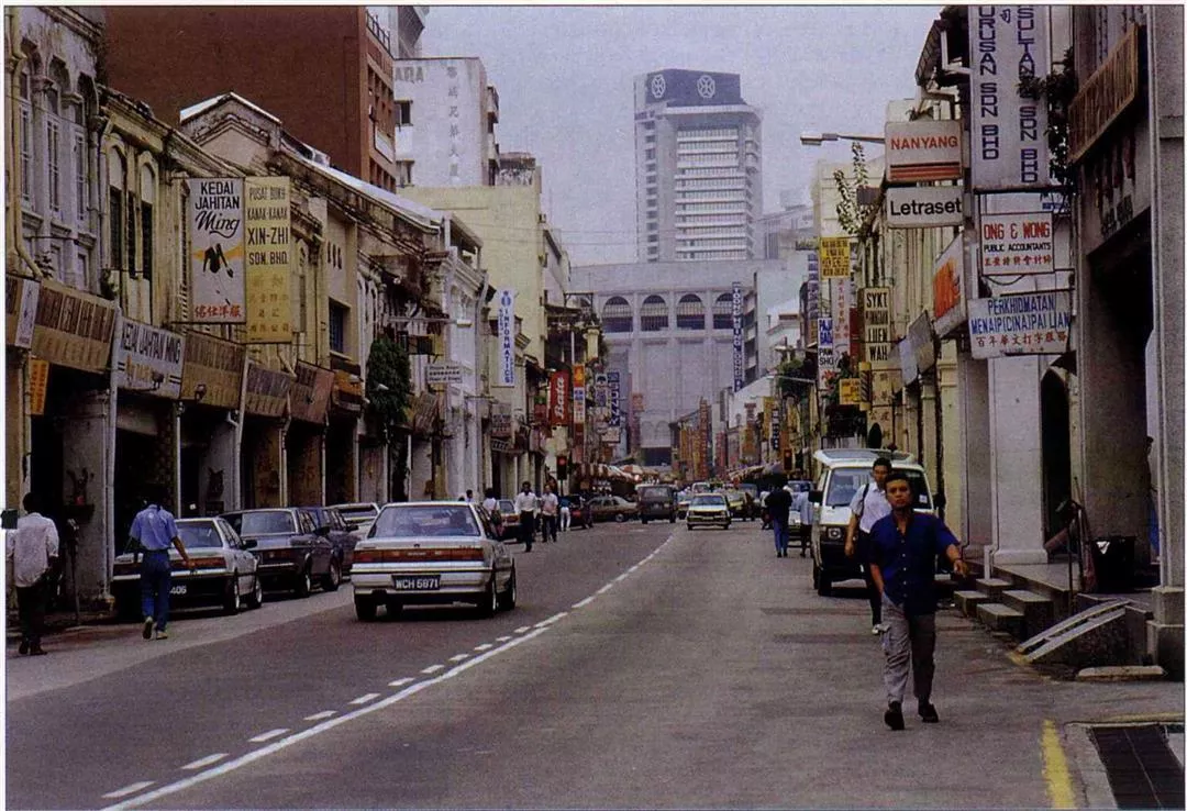 在所謂的「唐人街」上,兩旁的建築物都保留傳統店屋的風貌,一樓作店面,門前有騎樓供行人遮陽蔽雨;二樓則是住家,以玻璃窗或長條木窗採光。這種「海峽綜合式」的住商混合格局,在全馬幾座大城,乃至早期的新加坡及台灣都很常見。而此間人們的社會活動和經濟模式也一如往昔,守著老字號的店舖,會館錯落其間,街道攤販雲集,每到正午時分,街上摩肩擦踵,人聲鼎沸。如今馬國政府準備整修其中的「茨廠街」,杜絕髒亂及漫天開價的積習,還計畫在今年舉辦茨廠街嘉年華會,使它蛻變成觀光客的「購物天堂」。
