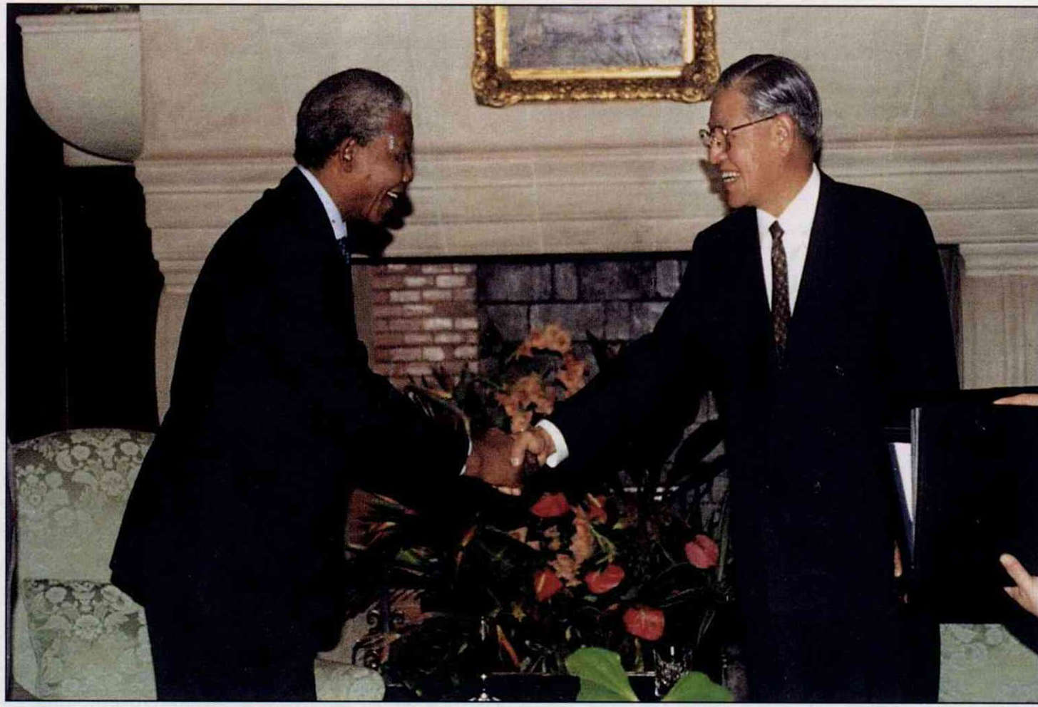 中共長期支持反種族隔離運動,並與南非非洲民族議會及南非共黨等反前白人政府團體情誼深厚,因而相當程度奠定了與今曼德拉政府的長遠友誼,九○年曼德拉出獄時,中共中央委員會即發函祝賀並且邀訪,九二年曼德拉應邀赴北京訪問,一九九四年五月曼德拉當選南非總統之後,中共即認為與南非建交的時機已經成熟,但曼德拉政府卻一再表示希望能同時保持「老朋友」與「新朋友」的平等交往,不但曾在九四年熱烈歡迎中華民國總統李登輝造訪,並在去年訪日、韓時又再三強調其希望同時擁有與台北和北京的友誼,唯中共僅一再重申其欲建交之意和反對南非對台保持外交關係。