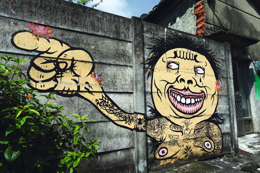 於是,進軍台北當代藝術館之前,新台灣壁畫隊徵召8位藝術家,進駐糖廠附近的白樹社區,與居民相處、「交陪」(台語,交心、搏感情的意思)之後,再把心中的體會,畫在荒廢屋舍的牆壁上。